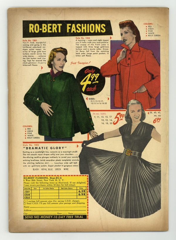 $127.00Photo Cover. Stories by unknown. Art by Paul Gustavson, Little Al & Lin Streeter, John Forte, Sam Citron and unknown. Featuring: "Born to Kill" starring Dave Hanley, Rex Tilton and Wenda Carr; "Flames of Deceit" starring Jan Marlowe, Jed Shane and Mrs. Shane; "Love on the Menu" starring Gary Abbott, Granny Abbott, Mr. Abbott, Mrs. Abbott, Nick and Sally Hill; the retitled reprint story "The Price of Fame" starring Lora Dunbar, Jimmy O'Hara, Nan, Max Fennan and Rod Allerton; and "Fool's Paradise" starring Don Logan, Hal Downing, Mrs. Logan and Lana Norton. Plus: 2-page text story "Little Brother Makes a Match" starring Alec Tabot, Patsy Parker, Stewart Howbridge and Timmy Parker. Also: Readers' letters in "What Does It Take to Catch a Husband"! 48 pages, full color. Cover price $0.10.