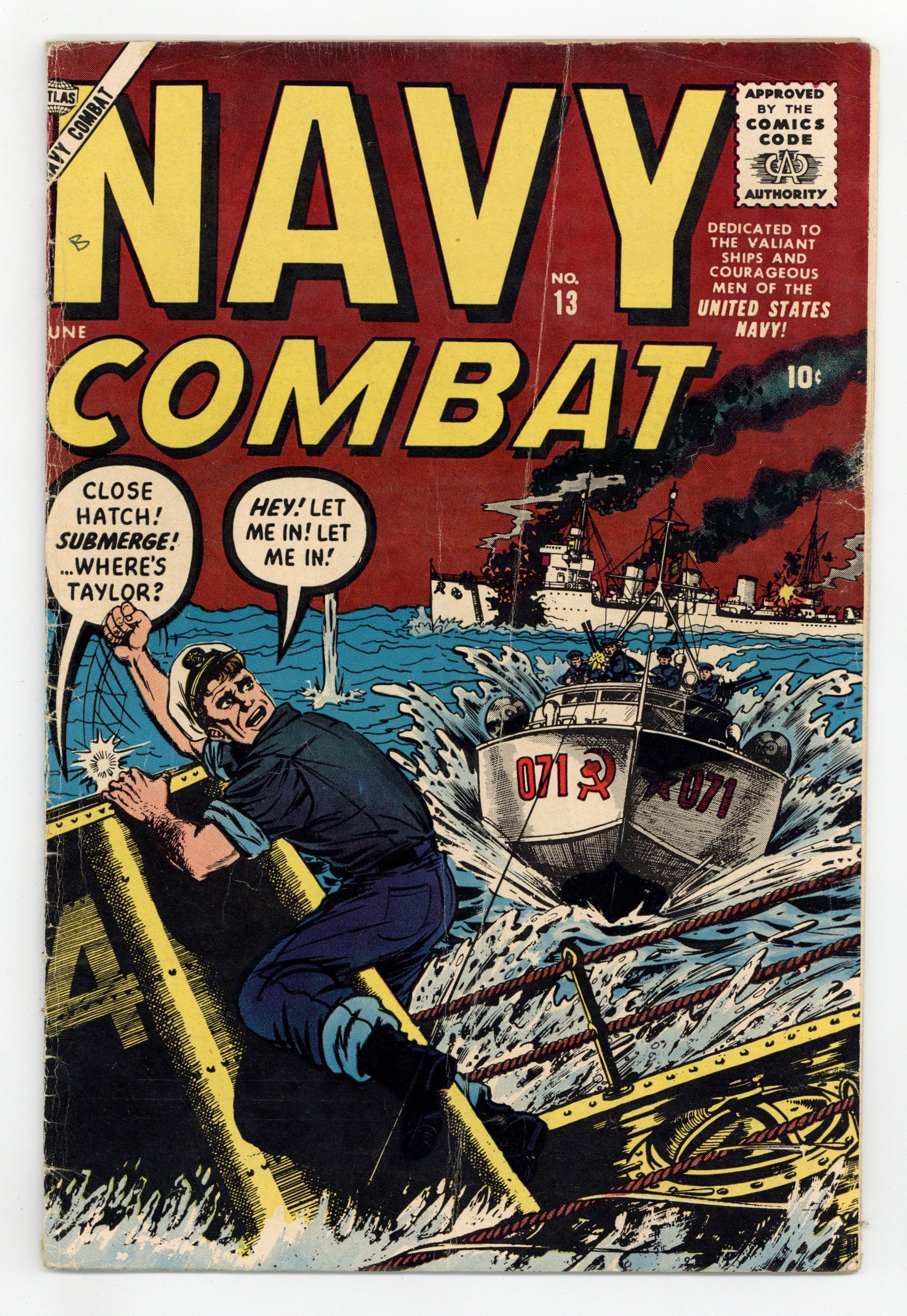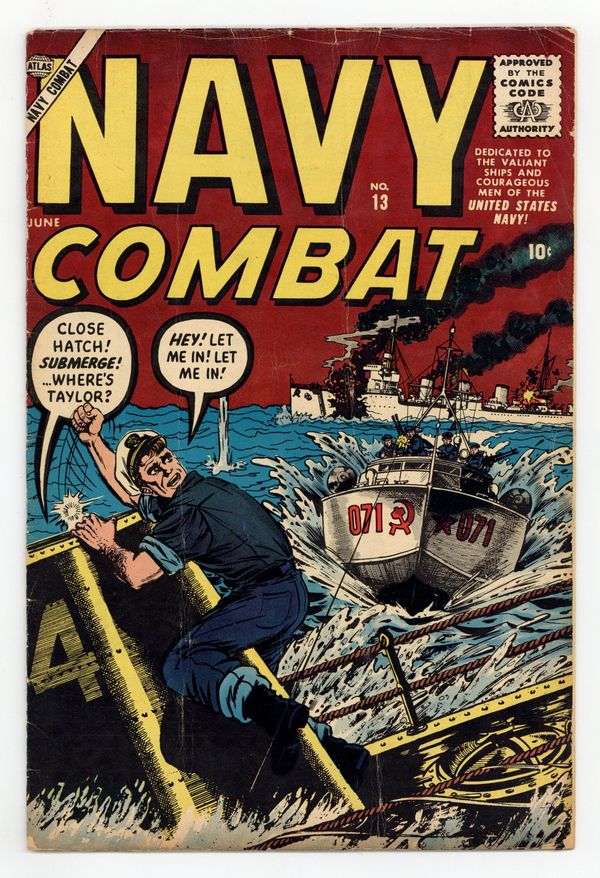 Torpedo Taylor in "Undersea Killer" and "Watch Your Sub Die" (art on both by Don Heck). Also "Destroyer" (art by Gene Colan), "Bandits--Nine O'Clock High," Our Fighting Fleet in "Yorktown," and a two-page text story, "Crazy Devices." Bill Everett cover. Cover price $0.10.