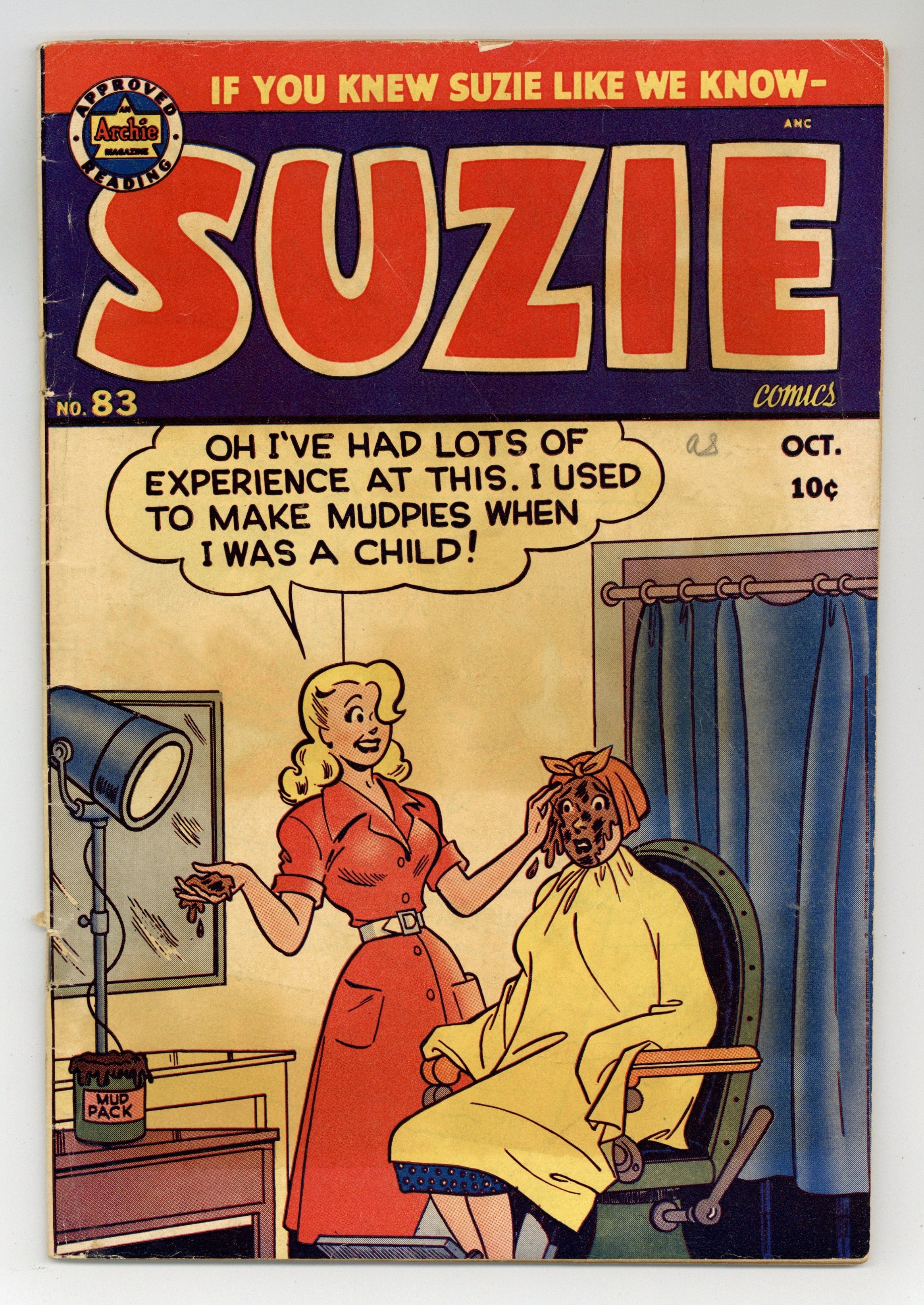 Cover by Samm Schwartz. "Professor Doodle's Doodles," script and art by Sam Schwartz; Professor Doodle demonstrates some of his latest inventions. "Tux Free," script and art by Sam Schwartz; Ferdie borrows a magician friend's tuxedo for a date with Suzie. "Hare Today Gone Tomorrow," script and art by Sam Schwartz; Ferdie tries out his ventriloquist act on Suzie's dad. "Doing What Comes Unnaturally," script and art by George Frese; Ginger's cheap, miserly, money-loving Uncle Scragg visits. "The Story Writer," script and art by Sam Schwartz; Suzie and Ferdie attempt to write a short story to win $500. Suzie's Movie Diary article; Suzie does movie reviews. "Safety First," script and art by Sam Schwartz; Suzie is learning to drive. 52 pgs., full color. Cover price $0.10.