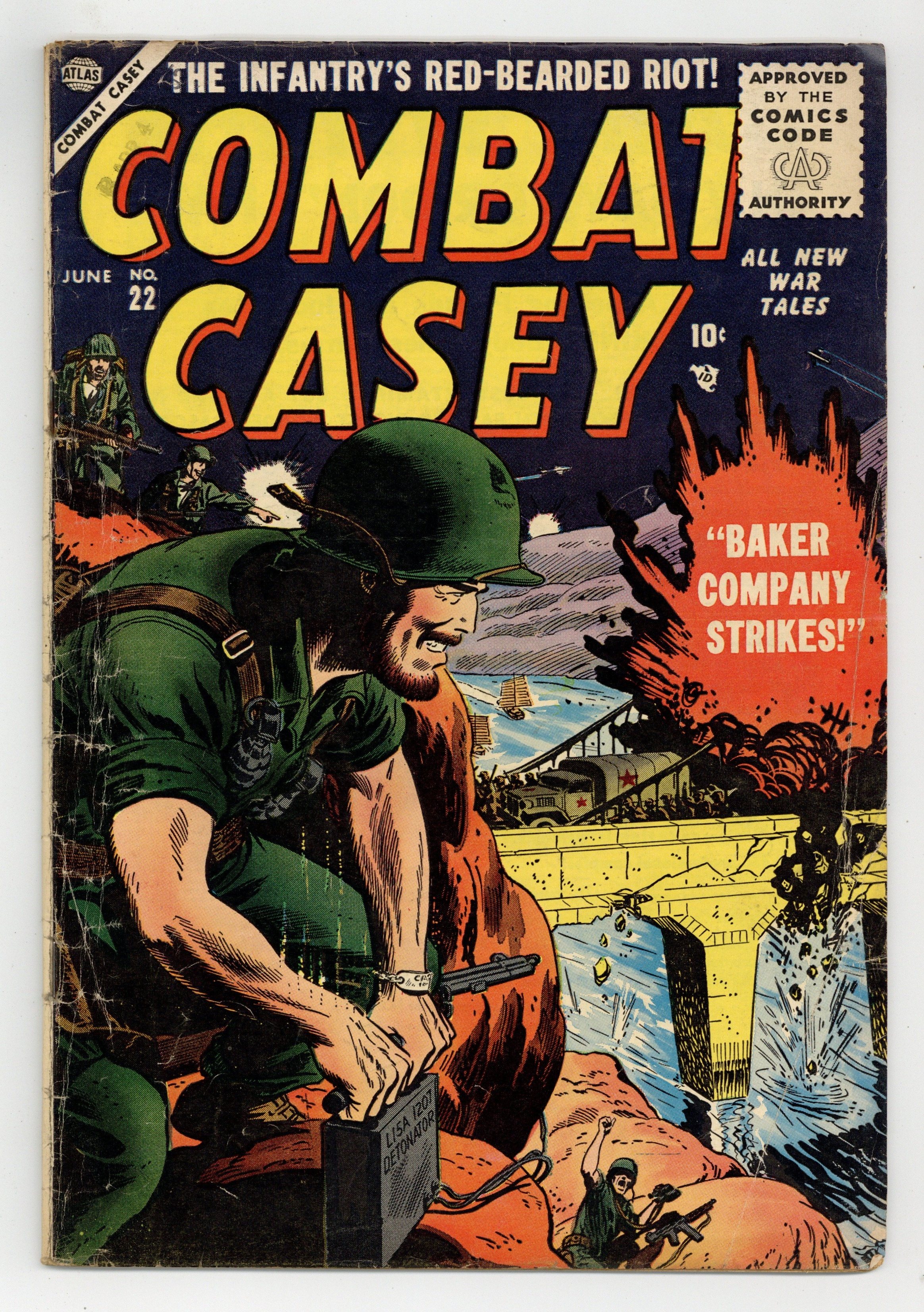 Combat Casey in "Baker Company's Big Battle," "Latour, Chetwood and Jones--the Three Privates," and one untitled story. Back-up: "You're in the Army Now." Art on all four by Robert Q. Sale. Two-page text story, "Let Jerry Do It." Russ Heath cover. Cover price $0.10.