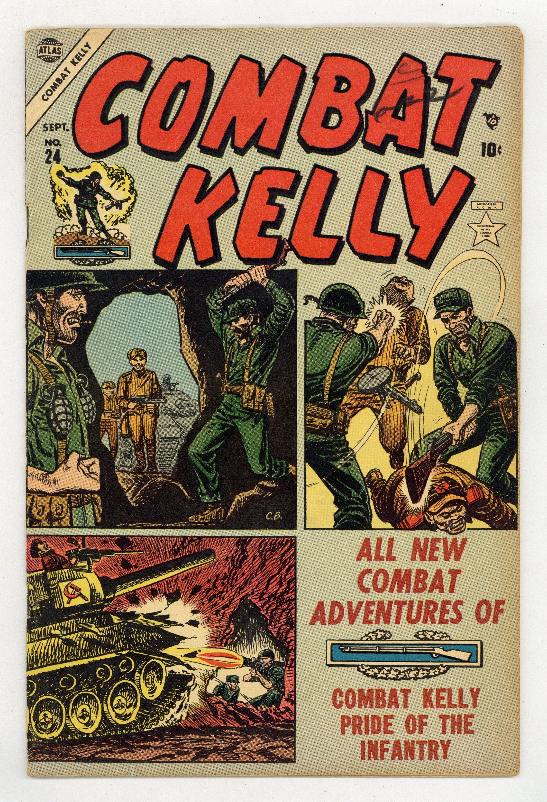 Combat Kelly in "The Dreadnoughts of the Air," "Panther Lady," and "Patrol Action Only" (art on all by Dave Berg). Back-up story, "Buddies" and a two-page text story, "Booby Traps." Cover price $0.10.