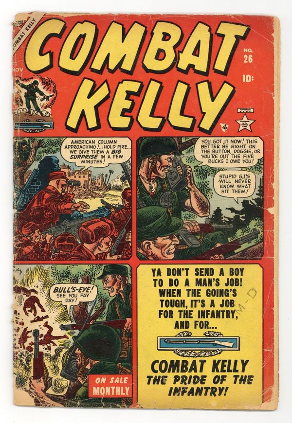 Combat Kelly in three untitled stories (art on all by Dave Berg). Back-up story, "The Four F's of Combat Fighting" (art by Vic Carrabotta). Joe Maneely cover. Cover price $0.10.