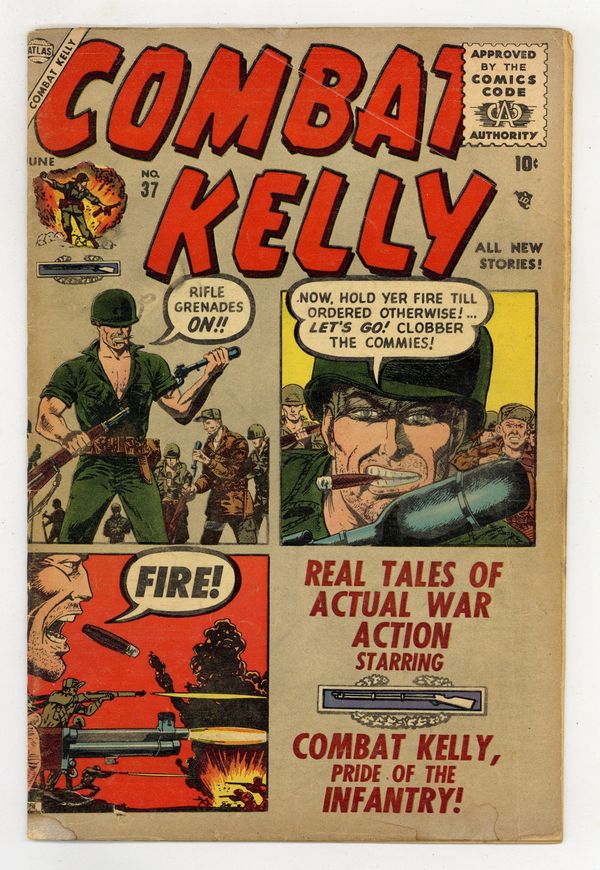 Combat Kelly in "All Quiet on the Fox Company Front," "The Last Battleground," "The Forbidden Weapon," and "Don't Let Them Get Thru." Back-up story, "Our Fighting Men!" All art by Dave Berg. Two-page text story, "The Heroes." Berg cover. Cover price $0.10.
