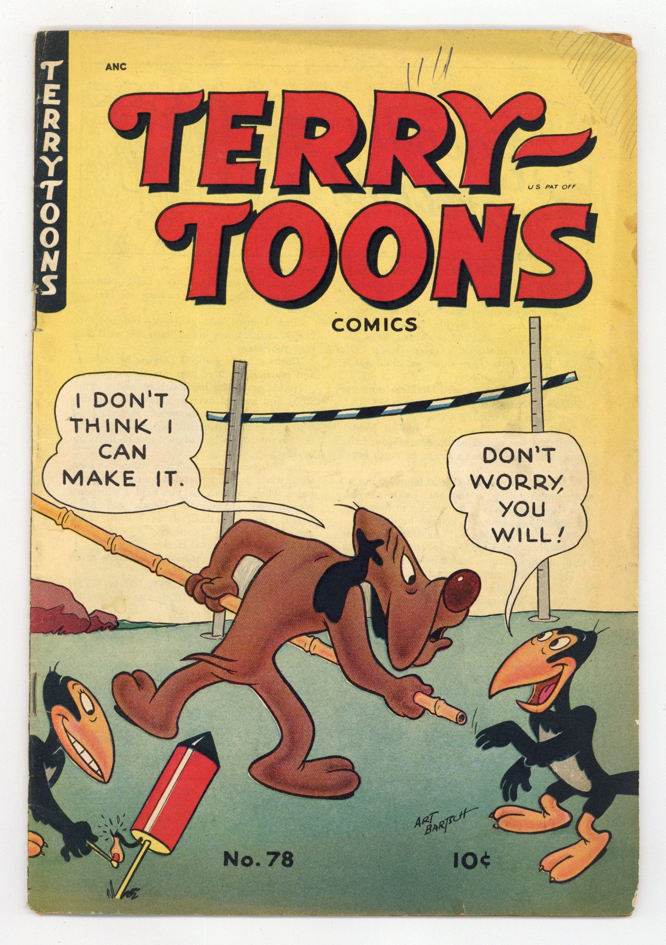 Cover by Art Bartsch. Art by Art Bartsch and Connie Rasinski. St. John presents the comics adventures of the characters of animator Paul Terry's studio. Mighty Mouse faces Professor Ohm's latest secret weapon. Gandy and Sourpuss try to catch a runaway baby carriage. Heckle and Jeckle have a chance to foil a robbery and be productive citizens for a change, but their efforts backfire anyway. Mighty Mouse: The Secret Weapon of Professor Ohm; Dinky; Gandy Goose: The Star Performers; Detective Dinky; Dinky: The Happy Hypnotist; Heckle and Jeckle: The Great Sawdust Mystery; Gandy Goose. 32 pages, Full Color. Cover price $0.10.