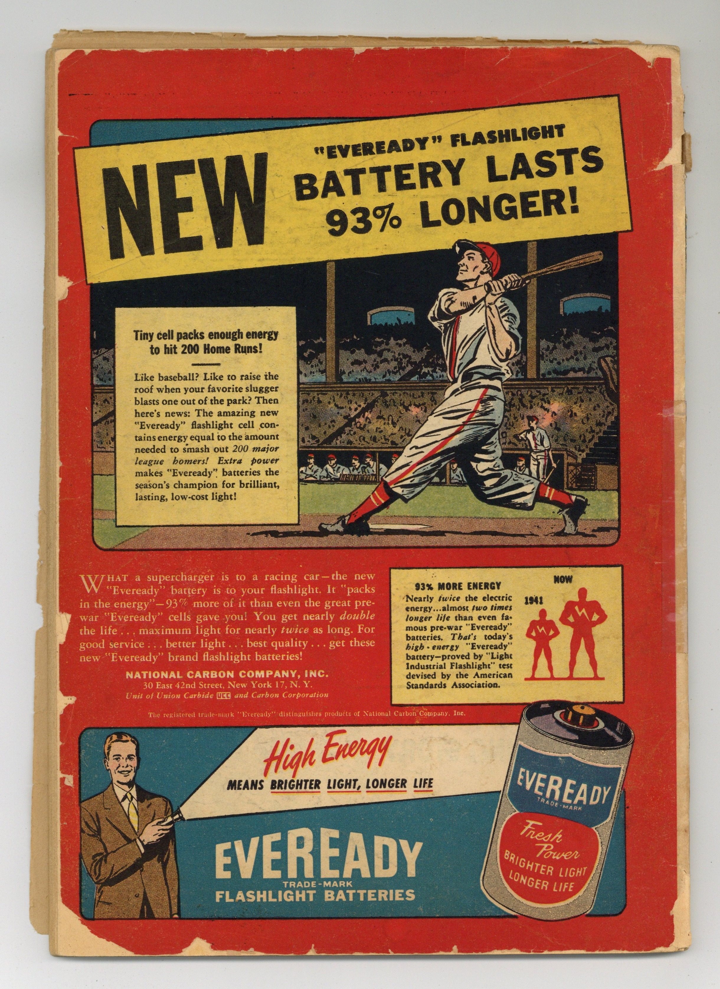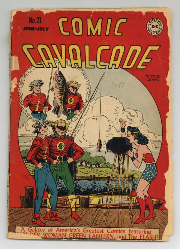 Cover art by Everett E. Hibbard. The Siege of the Flying Mermaids, script by William Moulton Marston (signed as Charles Moulton), art by Harry G. Peter; Wonder Woman must battle an evil group of mermaids that were created from tiny sharks by a formula invented by Gerta, willful daughter of Paula von Gunther. Mutt and Jeff strips by Al Smith (signed as Bud Fisher). Behind the 8-Ball--Just a Story, script and art by Howard Purcell. The Making of a Reporter starring The Flash, art by Martin Naydel. Mixy Pixy Brews a Bruise starring Hop Harrigan, script and art by Jon L. Blummer. O'Malley the Cop starring O'Malley of the Fourth Precinct, script and art by Irwin Hasen. The Man Who Couldn't Fail starring Green Lantern, script by John Broome, art by Paul Reinman; Alan Scott is summoned to his old Alma Mater in an attempt to locate the "brain child" of the university who mysteriously disappeared. 76 Pages, Full Color. Cover price $0.15.