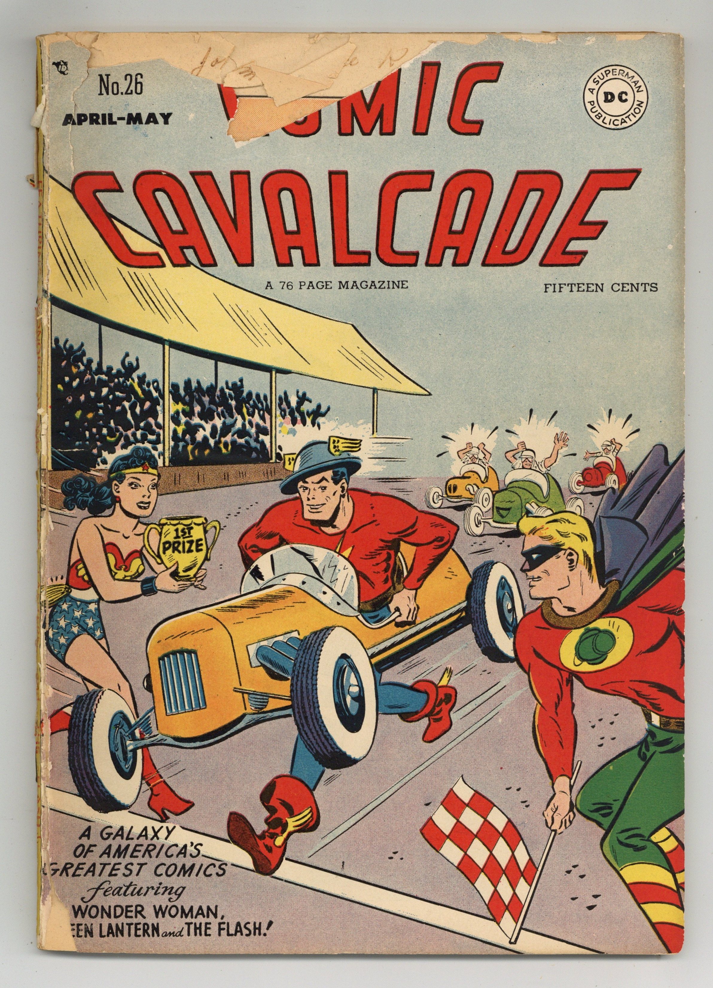 Cover art by Bob Oksner. Deception's Daughter, script by Robert Kanigher, art by Harry G. Peter; When Womnder Woman intercepts a Martian spacecraft from crashing to Earth, out steps the daughter of the Duke of Deception; She captures Wonder Woman and forces her to build an underground base from which Lya intends to return to Mars and overthrow her father. Mutt and Jeff strips by Al Smith (signed as Bud Fisher). Doorway into Time starring Johnny Peril, script and art by Howard Purcell. Forecast: Danger, art by Alexander Toth; Green Lantern has a hard time convincing a young man to follow in his father's footsteps as a meteorologist until a storm threatens a ship carrying his fiancé. The Mysterious Box starring Cotton-Top Katie, script and art by Harry Lampert (signed as Harrielle). Riddle of the Useless Thefts starring Hop Harrigan, script by Jon L. Blummer, pencils by Arthur F. Peddy (signed), inks by Bernard Sachs. Crime Has Many Faces, script by Robert Kanigher, art by Carmine Infantino; The Flash takes a man back ten years on a trip through time to show him how his carelessness has caused death and destruction over the years. 76 Pages, Full Color. Cover price $0.15.