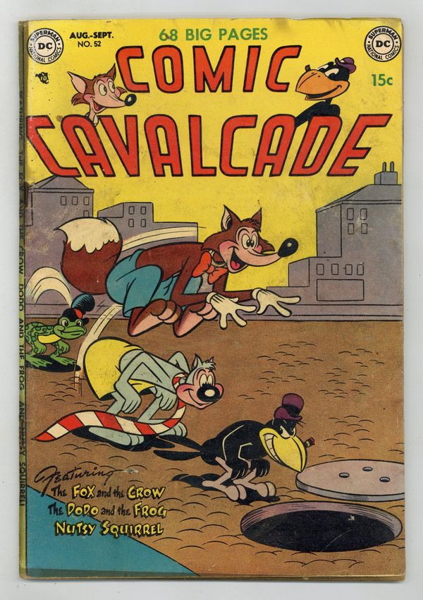 It's Smart to Check -- And Double Check! public service announcement starring Superman, script by Jack Schiff, art by Win Mortimer. Readers' Digestion starring Fox And Crow, script by Hubie Karp, art by Jim Davis. You Too Can Be An Artist starring Dodo and the Frog, art by Otto Feuer. ["Pitching horseshoes with my friend, Alvin!"] starring Nutsy Squirrel, art by Rube Grossman. The Zilch Gang starring Bernard the Brave, art by Otto Feuer. Mrs Vanderdough's Party starrin gCuster Cat and Cheesy the Mouse, art by Rube Grossman. Are You Overweight? starring Dizzy Dog, script and art by Sheldon Mayer. Gone Prospecting starring Bo Bunny, script and art by Sheldon Mayer. Blutz's Restaurant starring Tortoise and the Hare, art by Rube Grossman. The $50 Bill starring Nip and Chip, art by Otto Feuer. Playing Tag With a Cement Mixer starring Blabber Mouse, art by Rube Grossman. 68 Pages, Full Color. Cover price $0.15.