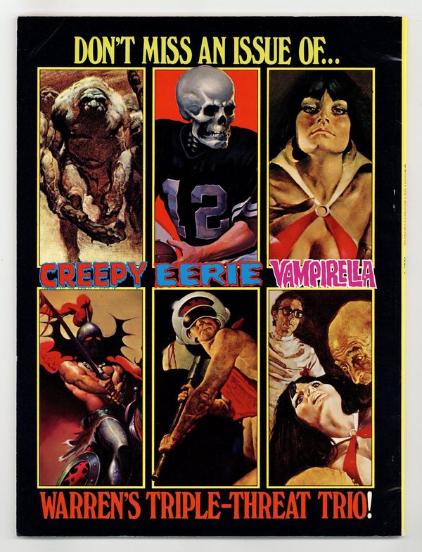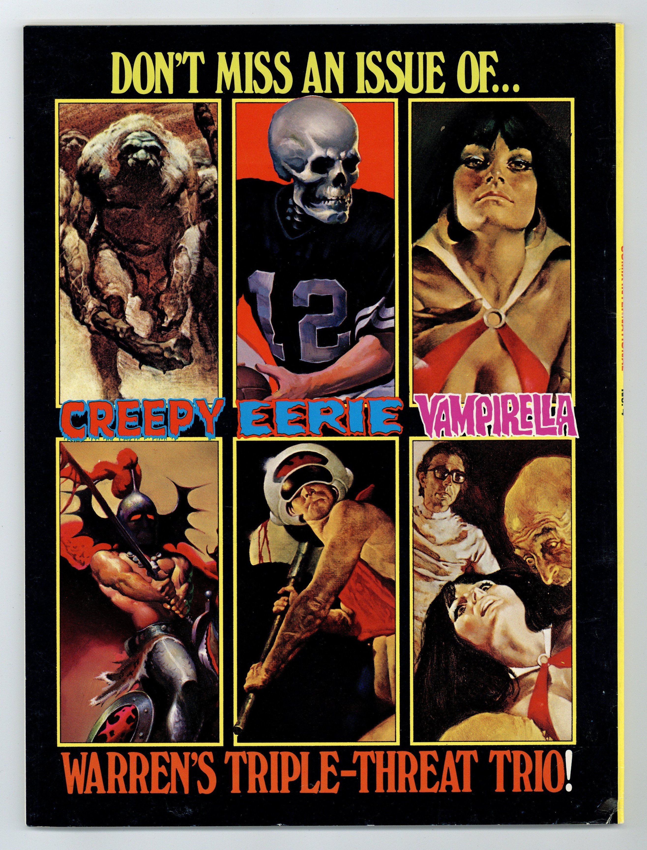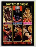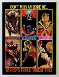 $40.00Richard Corben, Reed Crandall, Doug Moench, Paul Neary, and others. Comix International was a short-lived magazine comprised entirely of reprinted material (in color) from other Warren publications. Stories in this issue include: The Believer! by Budd Lewis and Richard Corben; The Power and the Gory by W. Eaton and Rafael Auraleon; The Freaks: A Thin Dime of Pain by Doug Moench and Leopold Sanchez; Child by Greg Potter and Richard Corben; Tell-Tale Heart by Archie Goodwin and Reed Crandall (from the story by Edgar Allan Poe); Exterminator One by Bill DuBay and Paul Neary; and Vampirella: The Monster Called Vampirella by Bill DuBay and Zesar Lopez. Includes artist profiles of Richard Corben, Reed Crandall, Rafael Auraleon, and others. Cover depicts montage of interior panels.