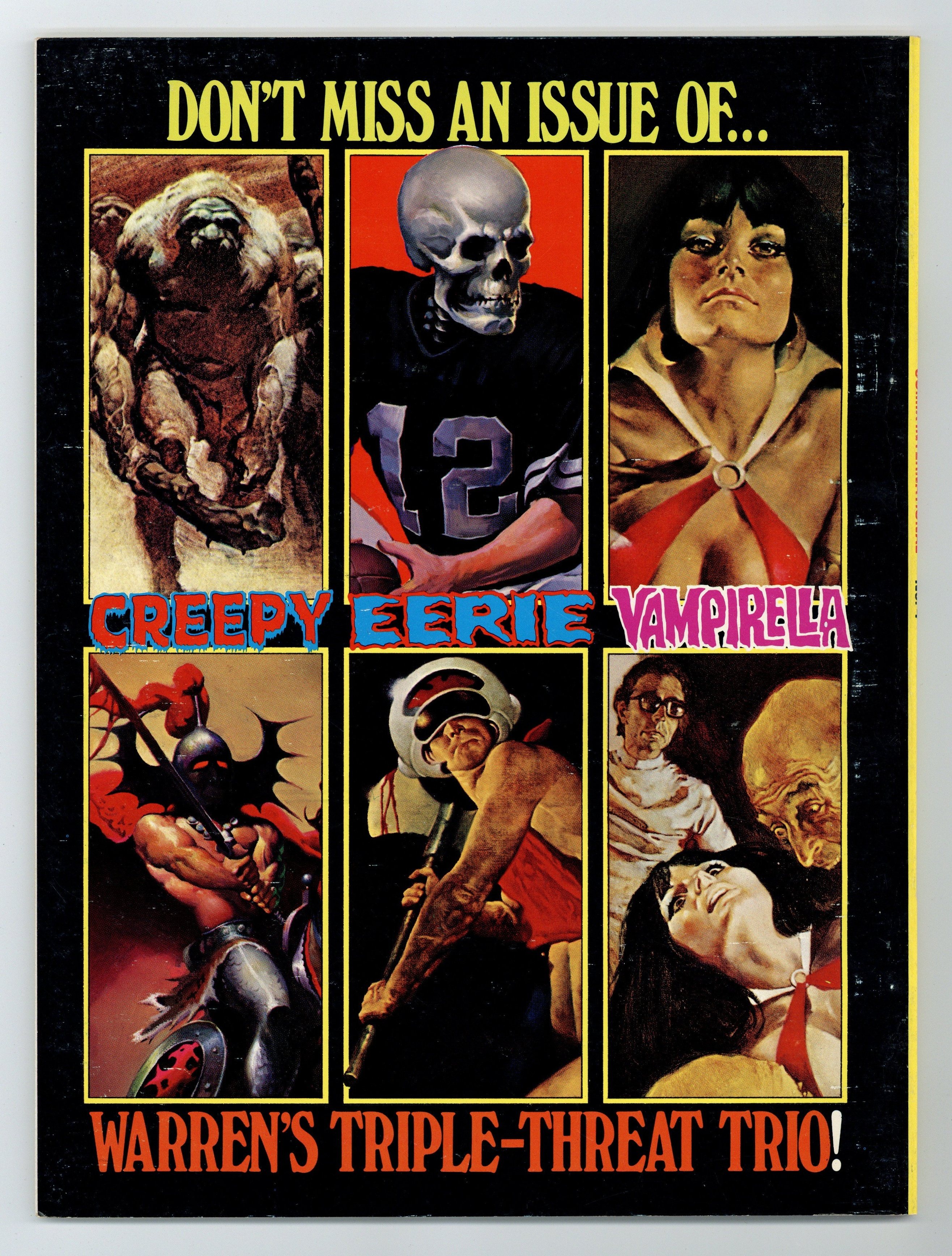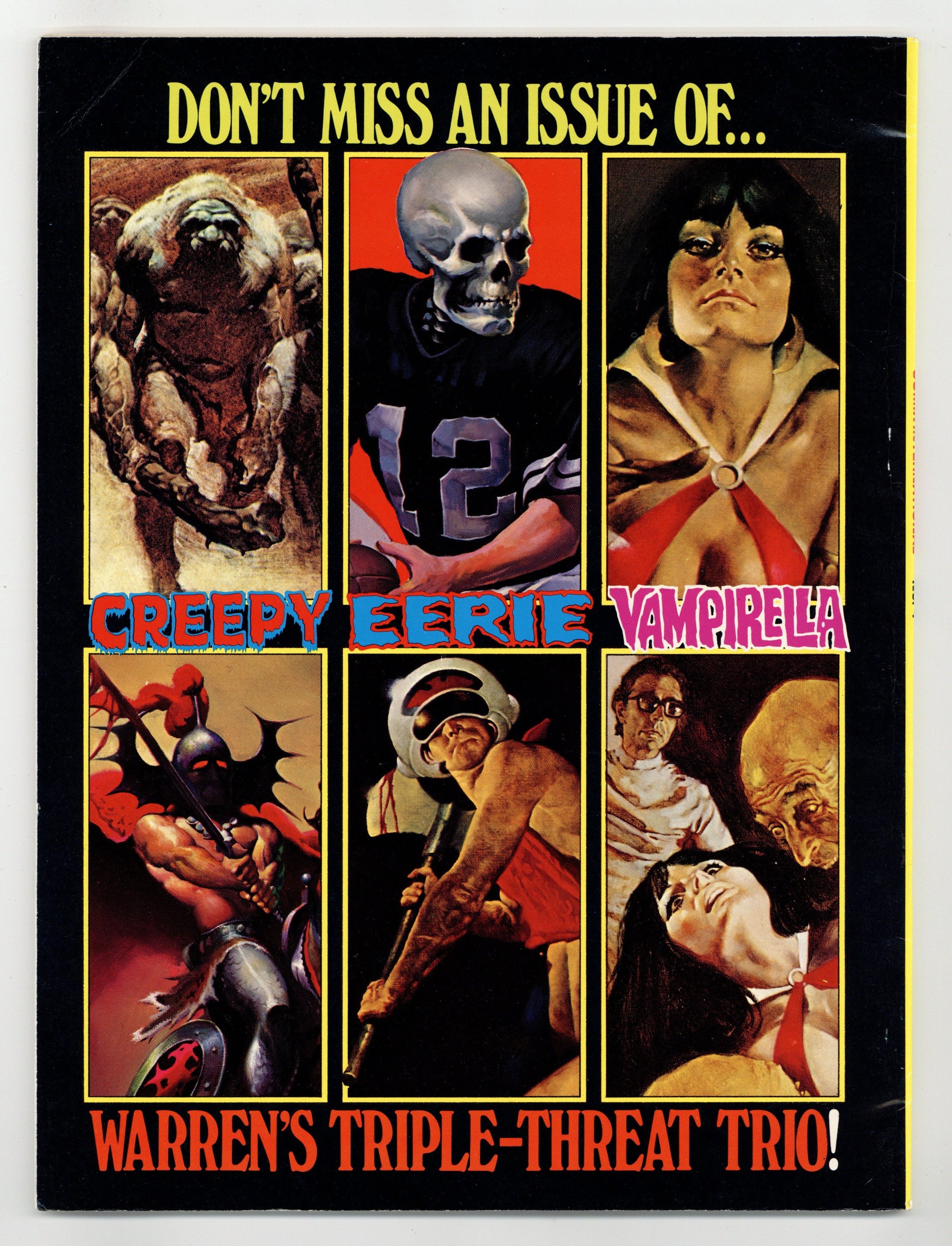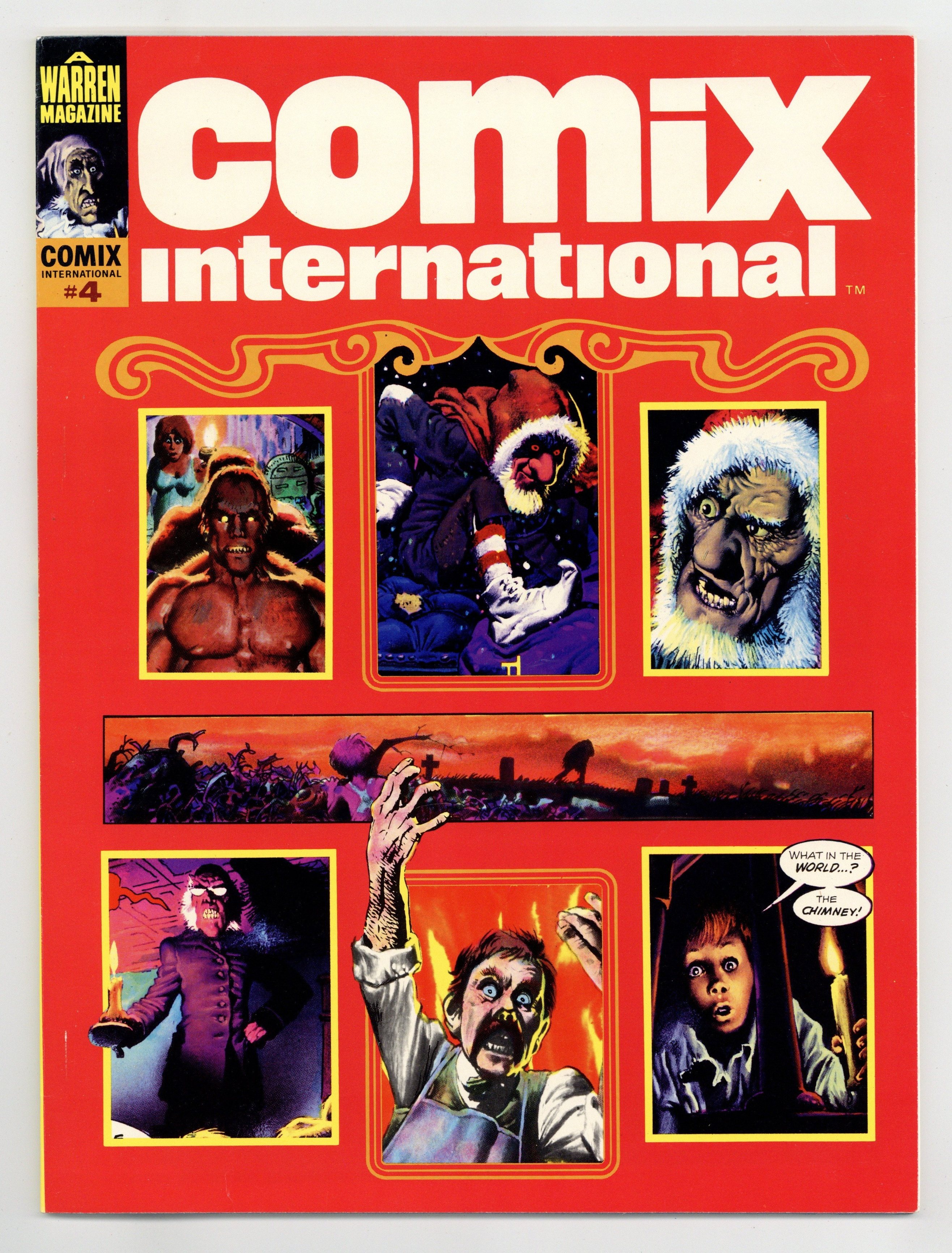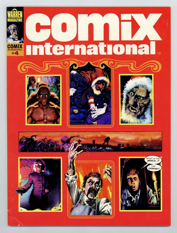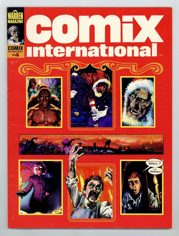 Richard Corben, Reed Crandall, Doug Moench, Paul Neary, and others. Comix International was a short-lived magazine comprised entirely of reprinted material (in color) from other Warren publications. Stories in this issue include: The Believer! by Budd Lewis and Richard Corben; The Power and the Gory by W. Eaton and Rafael Auraleon; The Freaks: A Thin Dime of Pain by Doug Moench and Leopold Sanchez; Child by Greg Potter and Richard Corben; Tell-Tale Heart by Archie Goodwin and Reed Crandall (from the story by Edgar Allan Poe); Exterminator One by Bill DuBay and Paul Neary; and Vampirella: The Monster Called Vampirella by Bill DuBay and Zesar Lopez. Includes artist profiles of Richard Corben, Reed Crandall, Rafael Auraleon, and others. Cover depicts montage of interior panels.