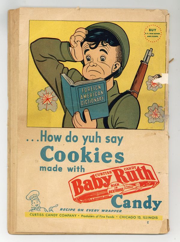 - RESTORATION. Piece fill with staples replaced. 7" Cumulative spine split. Tape under staples. Centerfold detached at one staple.