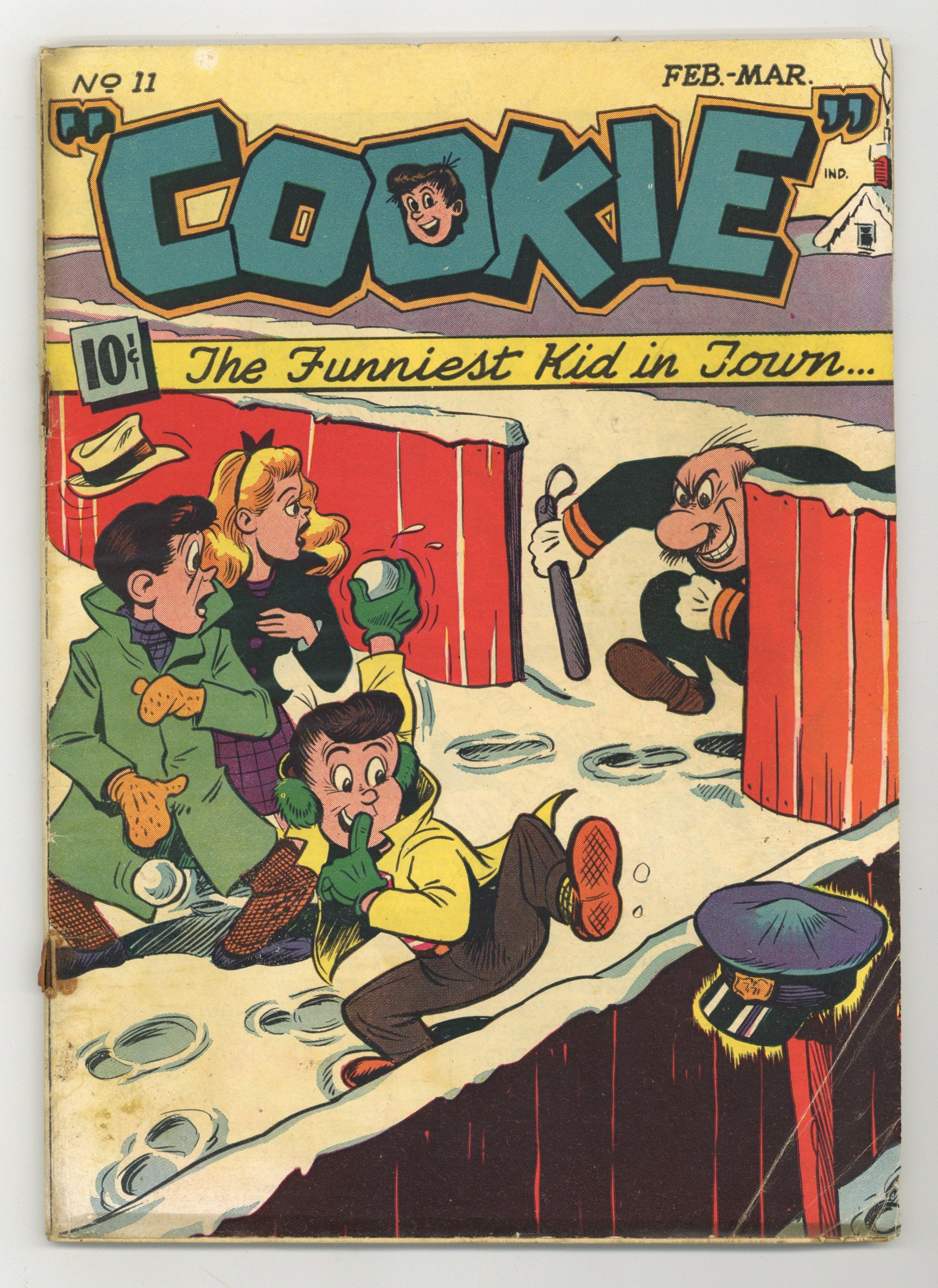 Stories by Dan Gordon. Art by Al Hartley and Dan Gordon. Cover by Dan Gordon. Teen hijinks featuring Cookie and his pals, created by legendary animator Dan Gordon. Cookie needs money to repair the family car before his dad finds out he wrecked it; Debbie tries to avoid the handsome lifeguard who wants to take her to the dance; A Teen Tales gag cartoon features a redheaded kid named Archie who wears an S letter sweater. Cookie; Pickles; Debbie; Jitterbuck's House Guest; A Man's A Man; Our Kid Sister; Teen Tales. 48 pages, Full Color. Cover price $0.10.