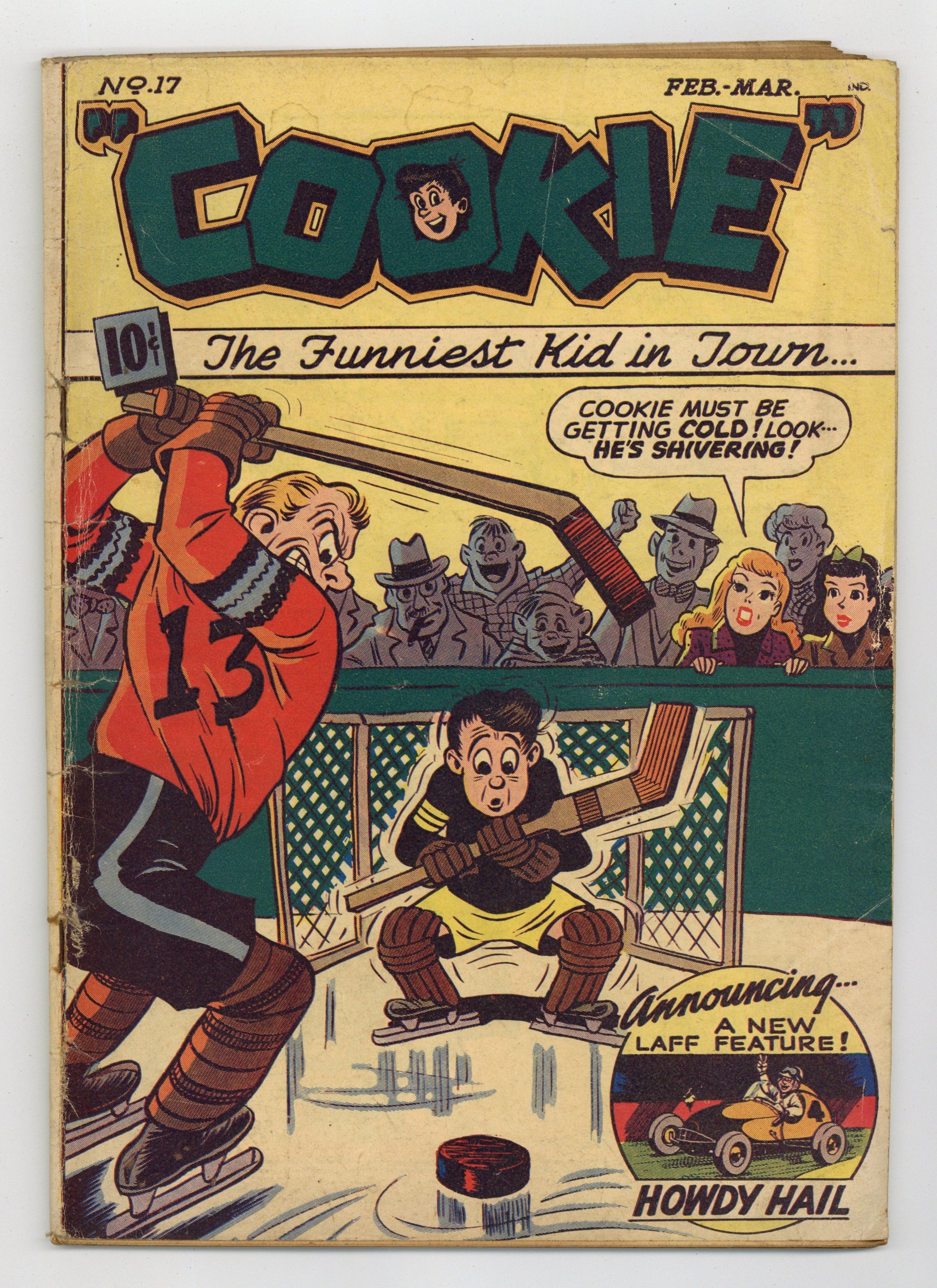 Stories by Dan Gordon and Al Hartley. Art by Dan Gordon, Al Hartley and Clark Haas. Teen hijinks featuring Cookie and his pals, created by legendary animator Dan Gordon. Cookie takes on a pro boxer to give his own face some character; Jitterbucks uncle, a circus freak, gets him and Cookie jobs with the circus; Romeo and Kewpie intercept the love note Pickles is sending Debbie with his RC plane, in a story with art by Archies Al Hartley. Cookie; Howdy Hail; Jitterbuck Jones, Unwilling Hero; Cookie and the Green-Eyed Monster; Pickles; Hep. 48 pages, Full Color. Cover price $0.10.