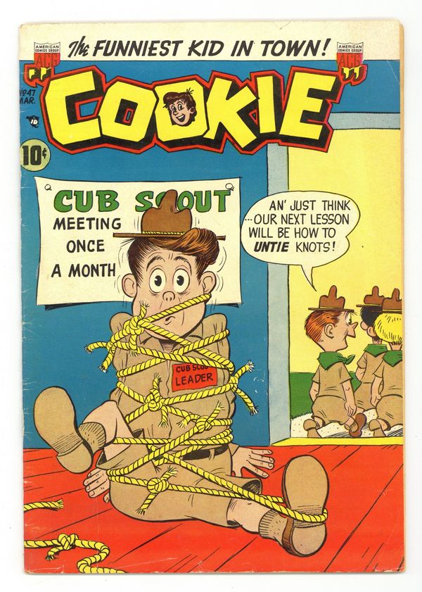 Published Mar 1954 by Michel Publishing.$21.00The Campus Stinkers; Cookie and Jittebuck compete in a treasure hunt. One-page That Boy's Delicate story starring Alfie, script and art by Al Hartley. Untitled Bebop Bobby story. Honeyboy Adams; Two cons mistake Jitterbuck for Honeyboy Adams. 1/2 page ad for the Kilroys comic book signed by Dan Gordon. 36 pgs. $0.10. Cover price $0.10.