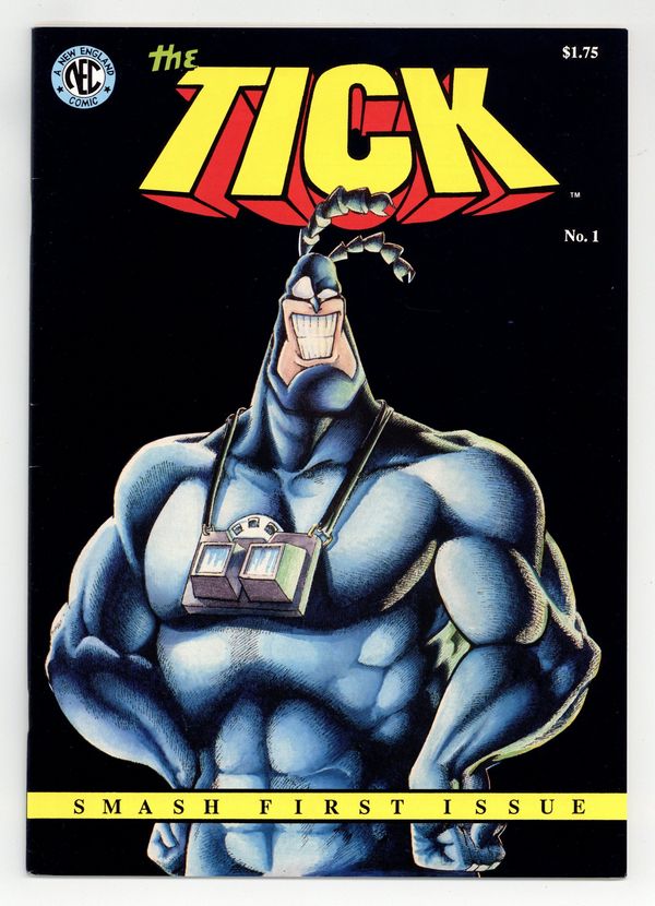 (2nd Edition) inside cover. This is a first printing of Tick #1, but Tick #1 reprints the serially numbered Tick Special Edition (1st appearance) w/minor changes. NOTE: This is a 1st Printing. 1st printings do not have a 2nd or later printing notice in indicia. Written by Ben Edlund. Art and cover by Ben Edlund. The Tick arrives straight from the nuthouse and into The City where he decides to be a superhero; After having a tussle with ninjas and being run over by a train, he is no closer to realizing his lofty goals. One page art lesson on how to draw The Tick by Ben Edlund. 36 pgs., B&W. $1.75. Cover price $1.75.