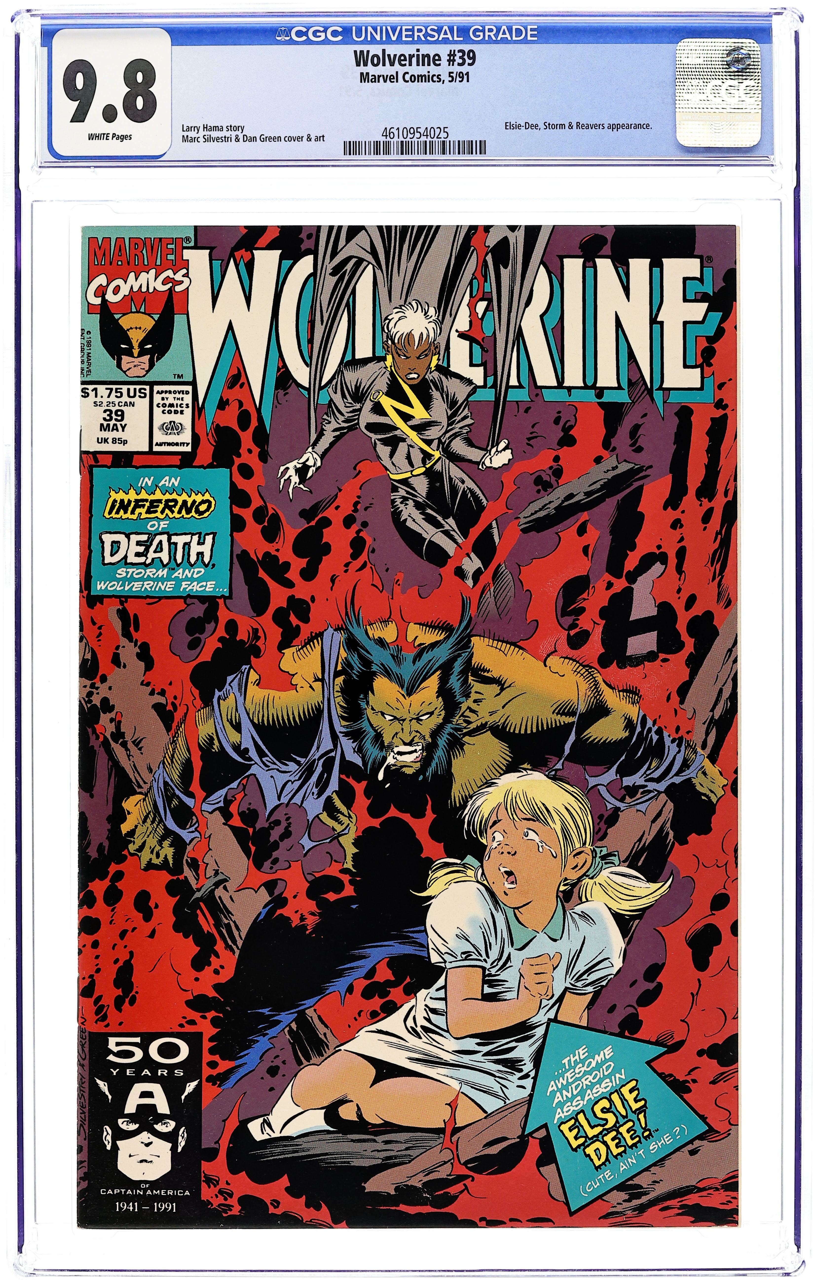"Deconstruction!" Guest-starring Storm. Written by Larry Hama. Art by Marc Silvestri and Dan Green. Elsie Dee may look like an innocent little girl but it turns out that she's actually a killer android built to lure Wolverine to his doom. Cover price $1.75.