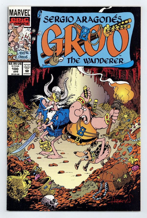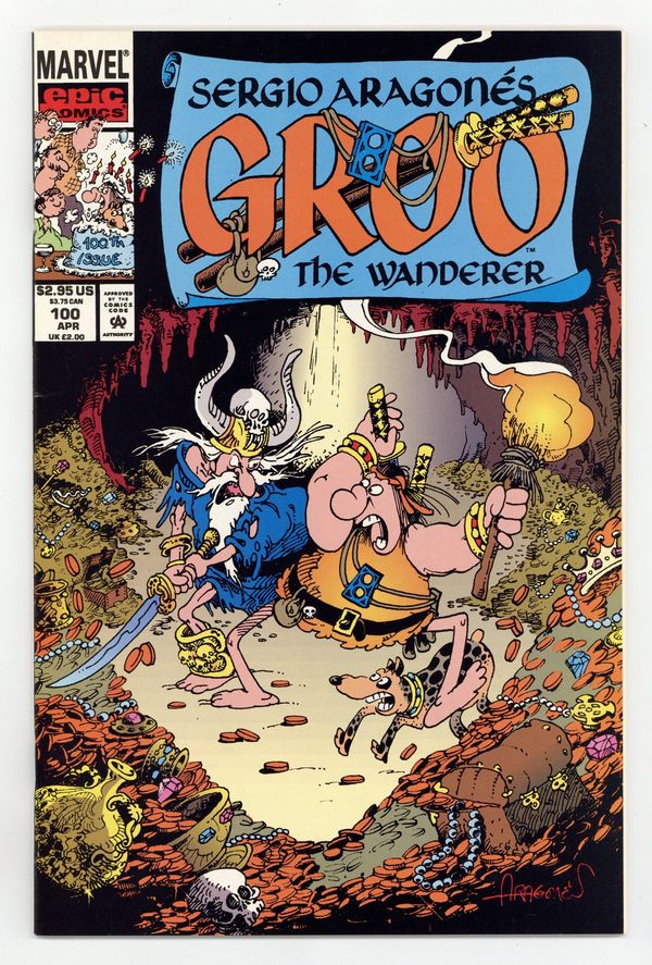 $14.0052-page giant. Comic featuring the humorous misadventures of the mighty but not-so-great (mentally) warrior named Groo. Special 100th issue featuring "A Little Knowledge" in which Groo learns to read. Issue also has a puzzle page and a Groo pinup on the back cover. Story and art credits: Sergio Aragonés. Cover price $2.95.