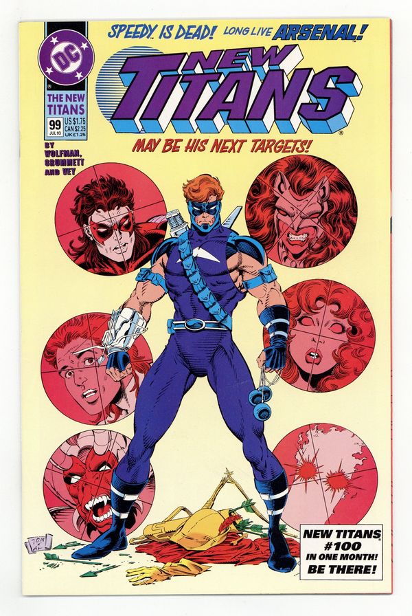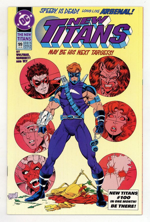 Tags: Teen Titans$20.00The Darkening: Part 3 of 4. "The Brotherhood!" Guest-starring Arsenal (formerly Speedy, 1st Roy Harper as Arsenal). Written by Marv Wolfman. Art by Tom Grummett, Al Vey, Robert Campanella, and Steve George. Has Elasti-Girl really returned from the dead? If so, why is she palling around with the Brotherhood of Evil? Plus, Speedy is no more! Meet Arsenal! Plus, the proposal. Cover price $1.75.
