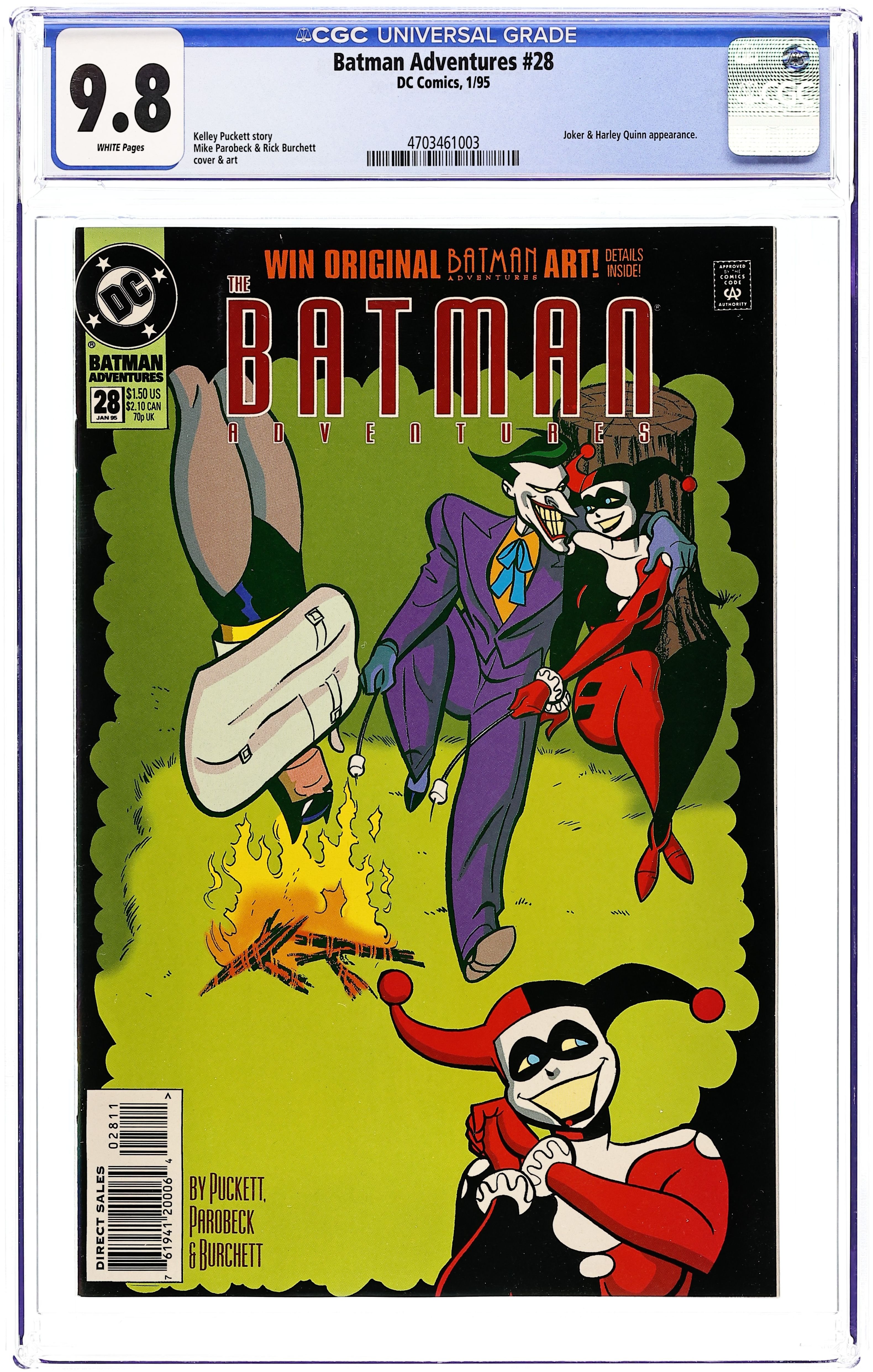 "Twelve Days of Madness." Gotham City councilmen are going crazy. Dr. Heimlich attempts to treat the Joker's mental illness. Harley Quinn guest stars in this madcap tale. Based on Batman The Animated Series. Script by Kelley Puckett, pencils by Mike Parobeck, inks by Rick Burchett. Cover by Parobeck. Cover price $1.50.