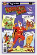 $6.00Cover by Bill Morrison. "To Betroth a Foe!", script by Bill Morrison, pencils by Christian Roman, inks by Tim Harkins; Larva Girl tries to trick Radioactive Man into marrying her. "Radioactive Man, Teen Idol," script by Bill Morrison, pencils by Stephanie Gladden, inks by John Adam; Radioactive Man performs at a rock concert in order to separate Larceny Lass and her gang. "The 1,001 Faces of Radioactive Ape," script and pencils by Scott Shaw!, inks by Phil Ortiz; Radioactive Man must sub for Radioactive Ape when his body suddenly goes through a metamorphosis. "Gloria Grand Radioactive Girl," script by Kaye Morrison, art by Bill Morrison; Gloria Grand gains radioactive powers, which gives her a shot at finally marrying Radioactive Man. "The Radioactive Man of 1995!", script by Bill Morrison, pencils by Sharon Bridgeman, inks by Abel Laxamana; Gloria Grand is accidently sent to the future, to the year 1995. Radioactive Man character profile. 84 pgs. $4.95. Cover price $4.95.