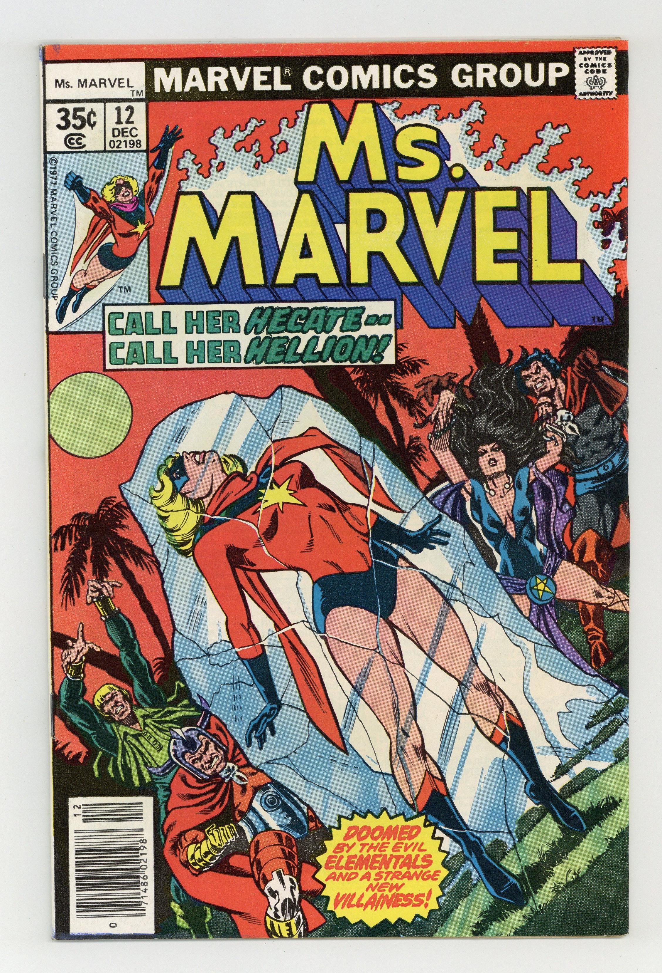Tags: Marvel Legacy Numbering: Captain Marvel (part 12)$8.00Cover pencils by Jim Starlin, John Romita, and Alan Weiss (alterations), inks by Joe Rubinstein. The Warrior-- and the Witch-Queen!, script by Chris Claremont, pencils by Sal Buscema (breakdowns) and Joe Sinnott (finished art), inks by Joe Sinnott; Marvel battles Hecate and her Elementals: Magnun, Hellfire, and Hydron; Asp Harper dies. 36 pgs, FC.