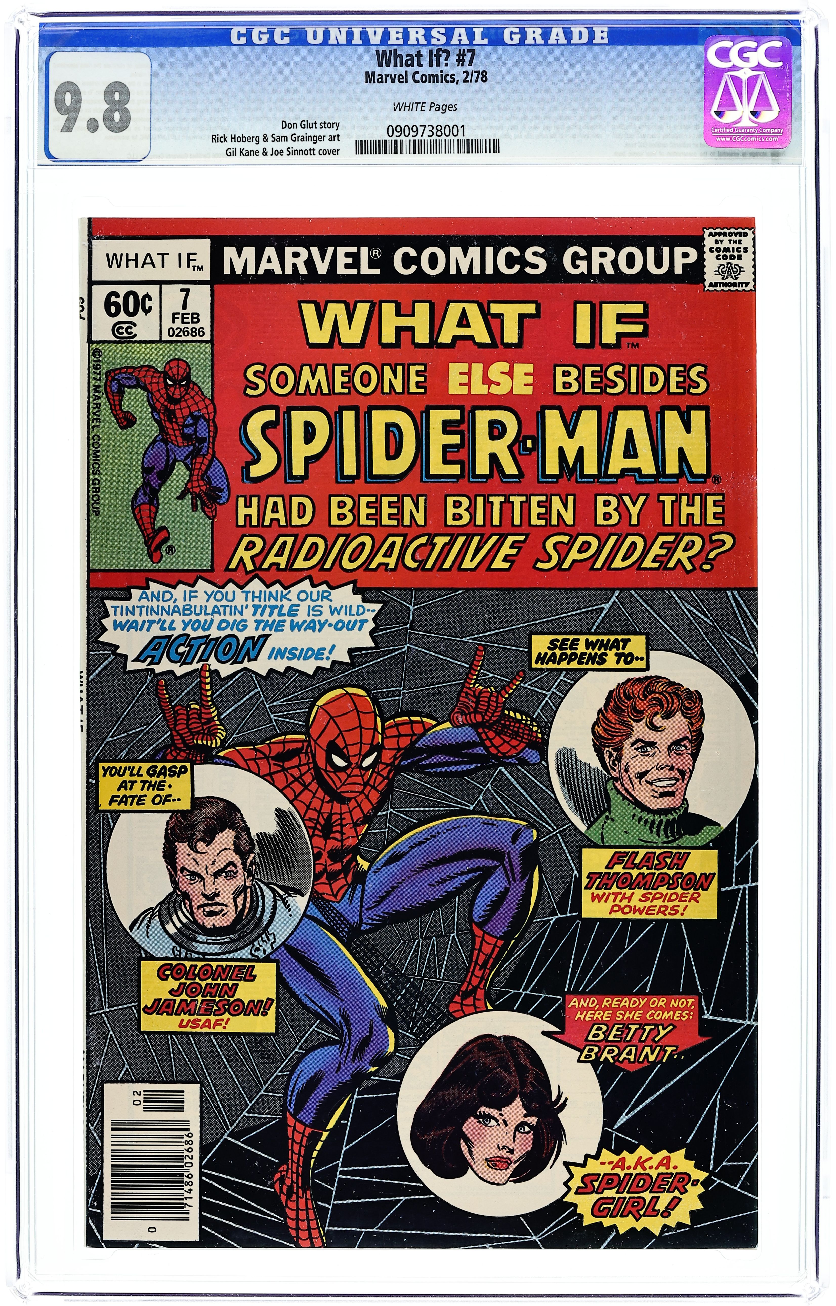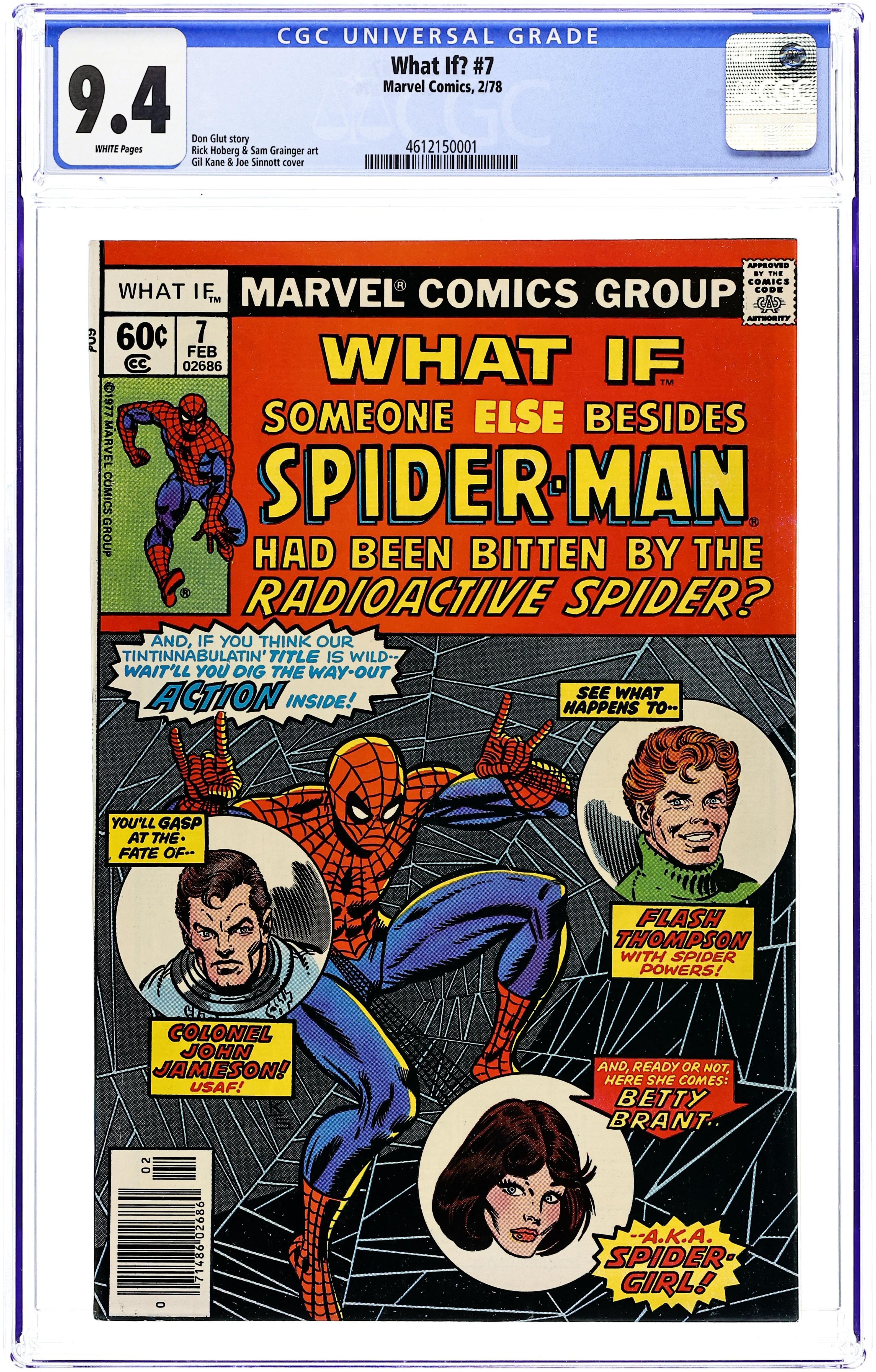 "What If Someone Else Had Become Spider-Man?" Script by Don Glut, pencils by Rick Hoberg, inks by Sam Grainger. Betty Brant, Flash Thompson, and Col. John Jameson each get bitten by a radioactive spider! On the letters page, editor Roy Thomas lists about 50 possible "What If" stories for the future and asks readers to pick three choices. See which ideas have been published since this 1978 issue. Gil Kane/Joe Sinnott cover. 52 pgs. Cover price $0.60.
