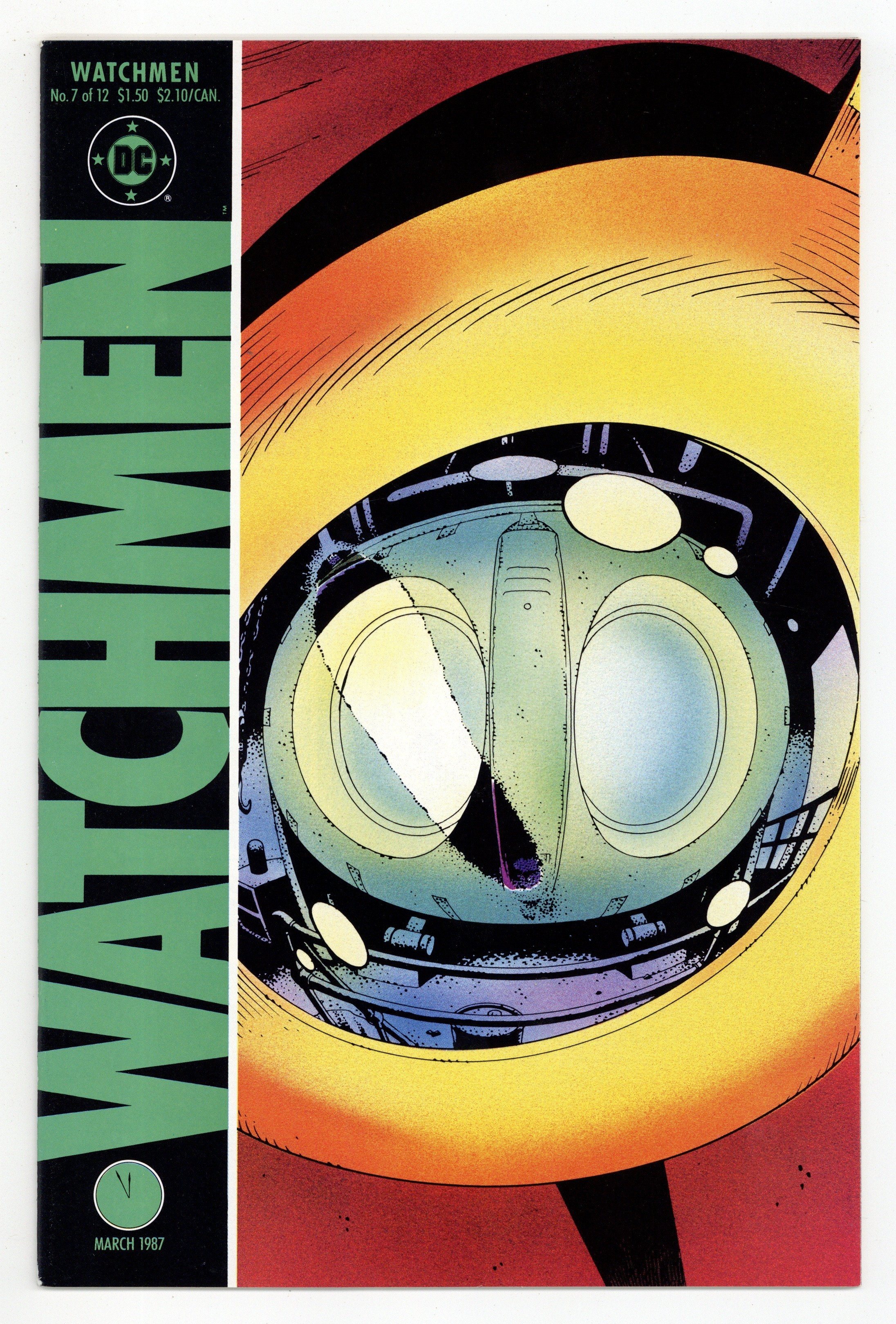 A brother to dragons. Part 7 of 12. Story by Alan Moore. Art and cover by Dave Gibbons. Night Owl and Silk Spectre return to active duty. Along the way we learn a lot more about what makes costumed heroes do what they do. Includes four page fictional text feature presenting, Blood from the shoulder of Pallas, an article by Daniel Dreiberg. 32 pages. Full color. No ads. Cover price $1.50.