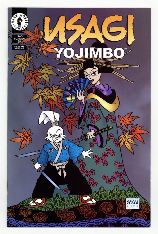 Published Apr 1999 by Dark Horse.$12.00Story and art by Stan Sakai. Usagi comes to the rescue of a girl attacked by masked bandits. She turns out to be the maid of the area's most renowned courtesan, recently back from seclusion. It comes to light that the assault was not a random attack, but the tip of a conspiracy. Usagi is soon embroiled in a plot involving the province's nobles and the successor to a lord's throne. Part one of a two-part story. 32 pages, B&W. Cover price $2.95.