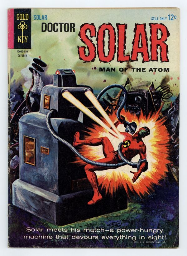 Dr. Solar in "Transivac the Energy-Consuming Computer!" and "Transivac - Part II The Enemy Within!" and Professor Harbinger in "The Robot Spacemen!" Painted front and back covers. Number on cover 10000-410 October. Cover price $0.12.