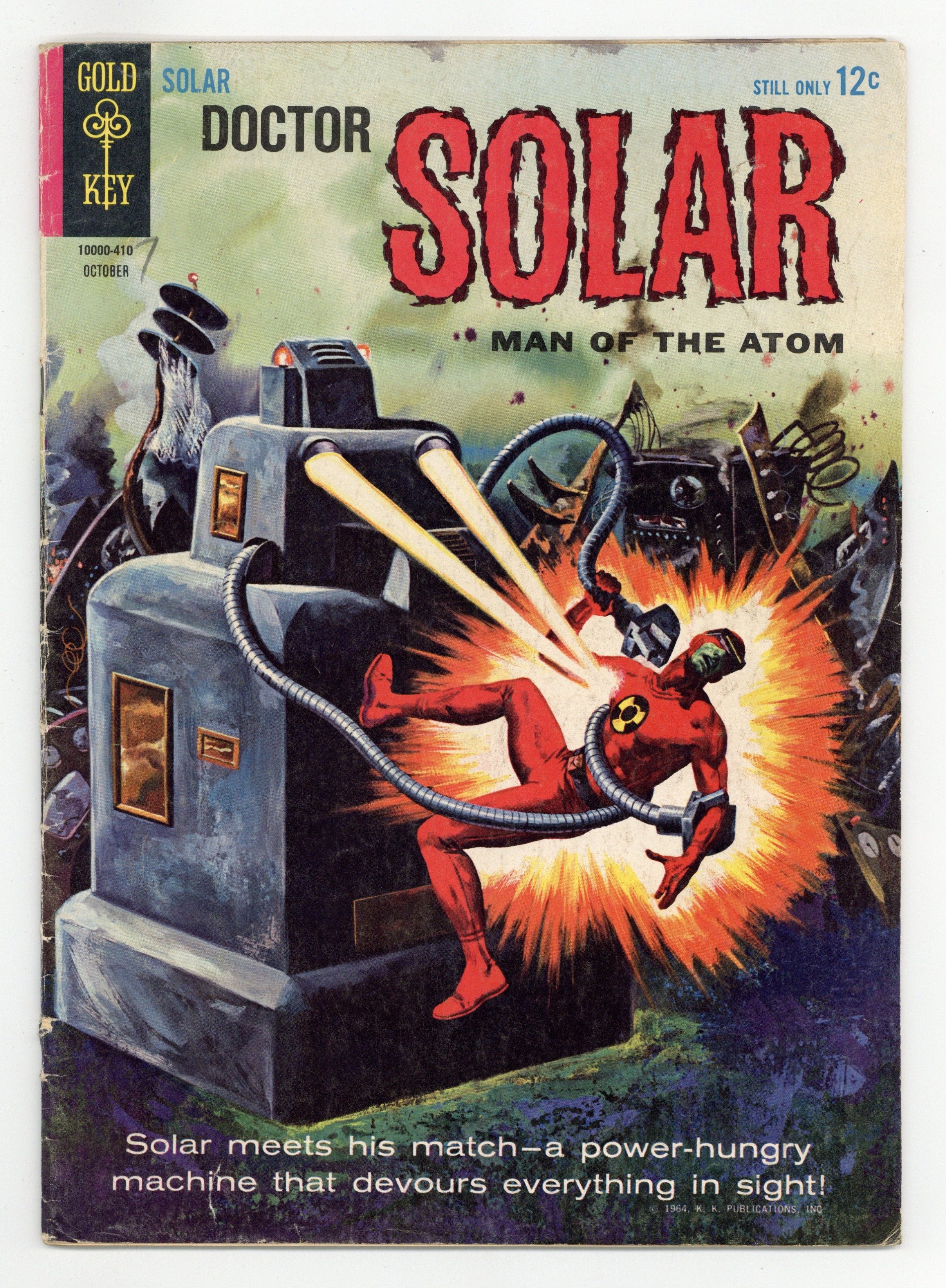 $16.25Dr. Solar in "Transivac the Energy-Consuming Computer!" and "Transivac - Part II The Enemy Within!" and Professor Harbinger in "The Robot Spacemen!" Painted front and back covers. Number on cover 10000-410 October. Cover price $0.12.