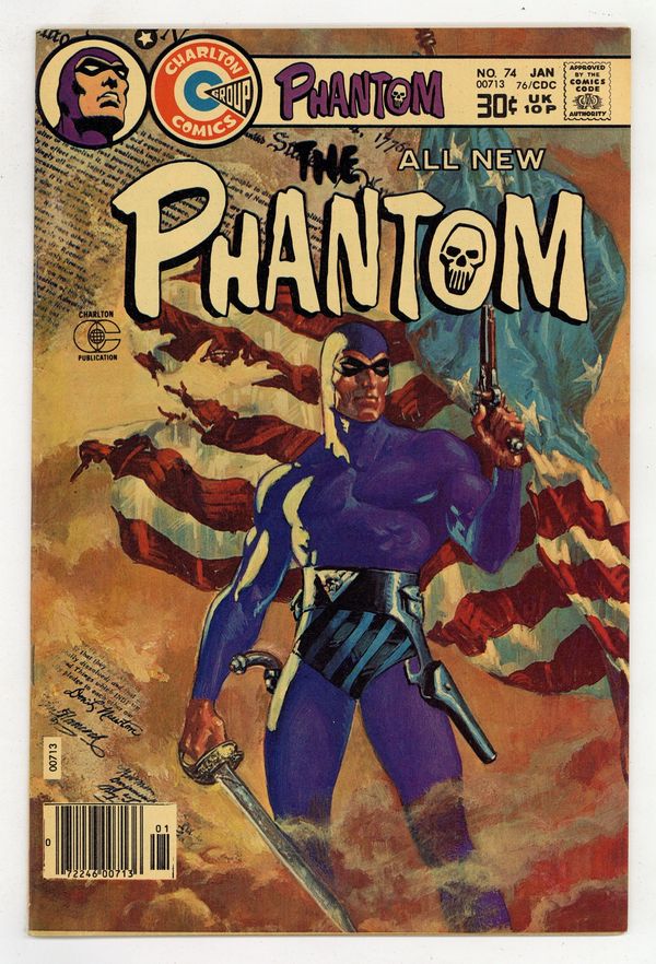 Final issue. The Phantom of 1776 - Story, Art and Cover by Don Newton. The Phantom of 1776 travels to America to rescue the Chief of the U-Thongii's son, Tsu-Mok, from slavery. While in America he visits his friend Benjamin Franklin and witnesses the signing of the Declaration of Independence. Characters in this story: Phantom; Knunji; Oolman (Chief of the U-Thongii); Captain Blaasco Vruelle; Captain Quench; Mr. Watley; Tsu-Mok; Shane Burgher; Benjamin Franklin. (Note: Bill Pearson is credited as writer of this story in Comic Reader, The (1961) #132 & 135.) 32 pages, full color. Cover price $0.30.