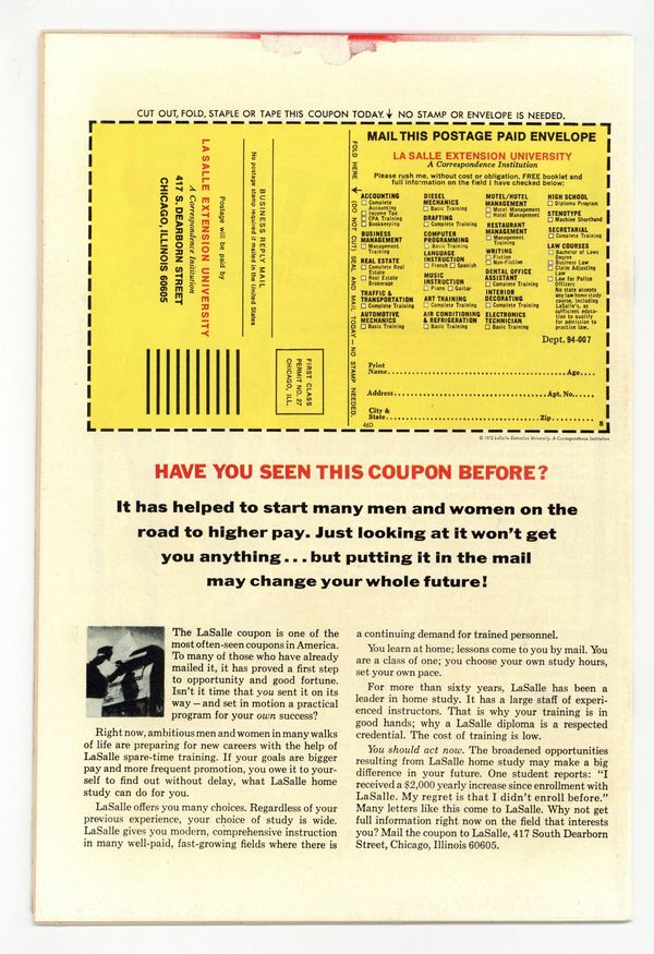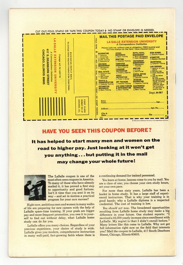Starts Dec 15 "Breakthrough" Avengers-Defenders crossover. Part 6 of 8. Guest-starring the Avengers. Script by Steve Englehart. Pencils by Sal Buscema. Inks by Frank Bolle. Cover by John Romita. One of the classic issues of the Defenders! Story continues from Avengers 117. The sixth and final superhero battle of the Avengers-Defenders Clash! And as shown on the cover, it's a matchup of true Marvel heavyweights! The Green Goliath rumbles thru the streets of Los Angeles looking for the Evil Eye. And lo and behold he finds it! However, the Avengers have also sent a team member to the city of angels! The Prince of Asgard! When the thunder god confronts the gamma-radiated defender, the epic clash of the titans erupts! Wow, the Mighty Thor vs. the Incredible Hulk! A battle for the ages! Next Chapter: "United We Stand!" In Greenwich Village the Defenders gather around the four pieces of the Evil Eye that they have recovered. When Prince Namor joins his teammates, he brings with him the fifth piece of the eye plus the Avengers! Whoa! Not exactly what Doctor Strange was expecting! Is another battle on the horizon? Or have the super-heroes finally realized who's been orchestrating the events? Story continues in Avengers 118. Cameo appearances by Asti and Dormammu. Flashback cameo by Loki. (Notes: This issue includes two outstanding full-page panels. The first on page 15 depicting Thor and the Hulk locked in combat; and the second on page 23 featuring seven avengers and five defenders conversing in Dr. Strange's townhouse. The Avengers-Defenders clash was reprinted in a trade paperback in 2002 and again in a hard cover edition in 2007.) 36 pages Cover price $0.20.