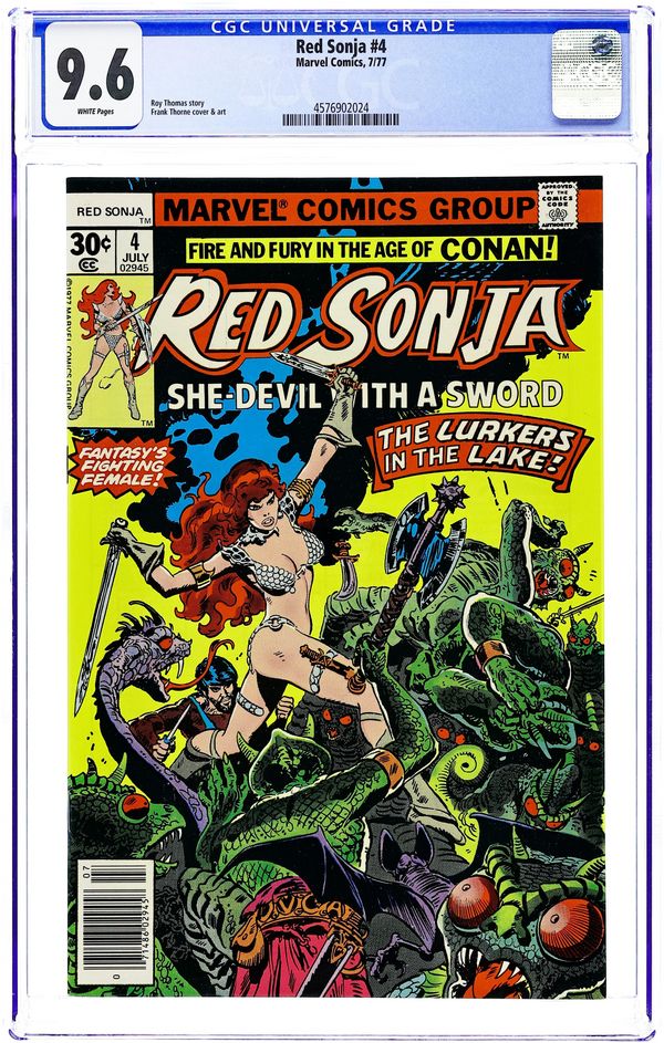 $30.00"The Lake of the Unknown." Script by Roy Thomas and Clara Noto, art and cover by Frank Thorne. Spider-Man stars in a one-page Hostess ad, "Madam Web!" Cover price $0.30.