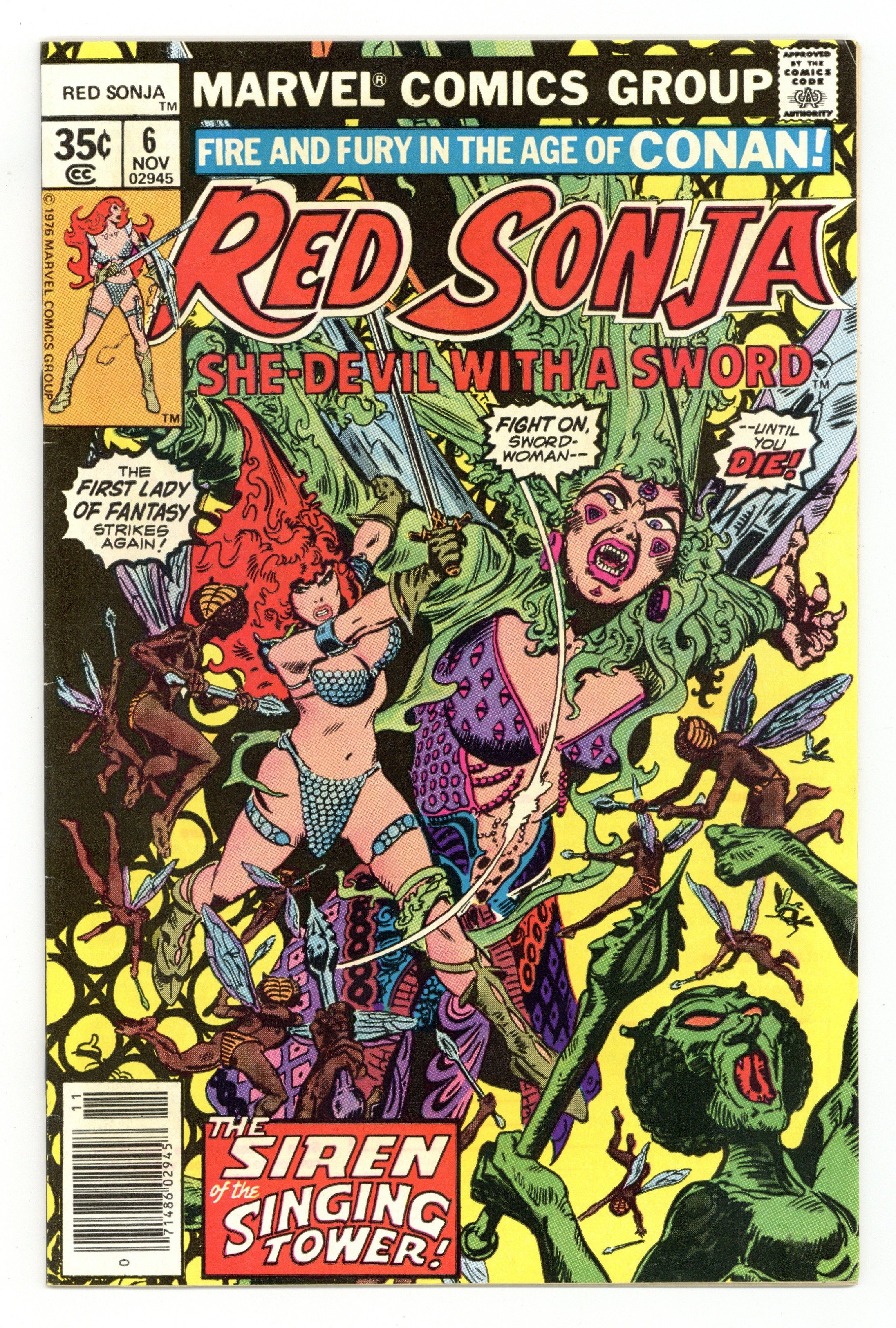 First 35-cent cover-price. "The Singing Tower." Script by Roy Thomas and Wendy Pini (of Elfquest fame), plot by Clara Noto, art and cover by Frank Thorne. Spider-Man stars in a one-page Hostess ad, "Legal Eagle." Cover price $0.35.