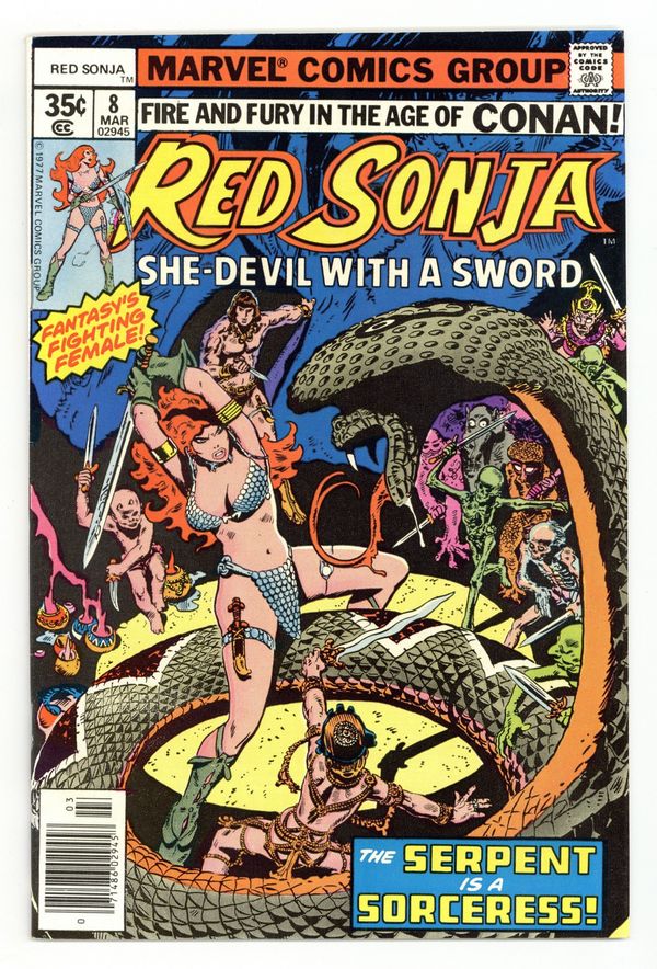 $22.50"Vengeance of the Golden Circle!" Script by Roy Thomas and Clara Noto, art and cover by Frank Thorne. One-page Hostess ad, "Spider-Man Spoils a Snatch." One-page Star Wars merchandise ad with Neal Adams art. Cover price $0.35.