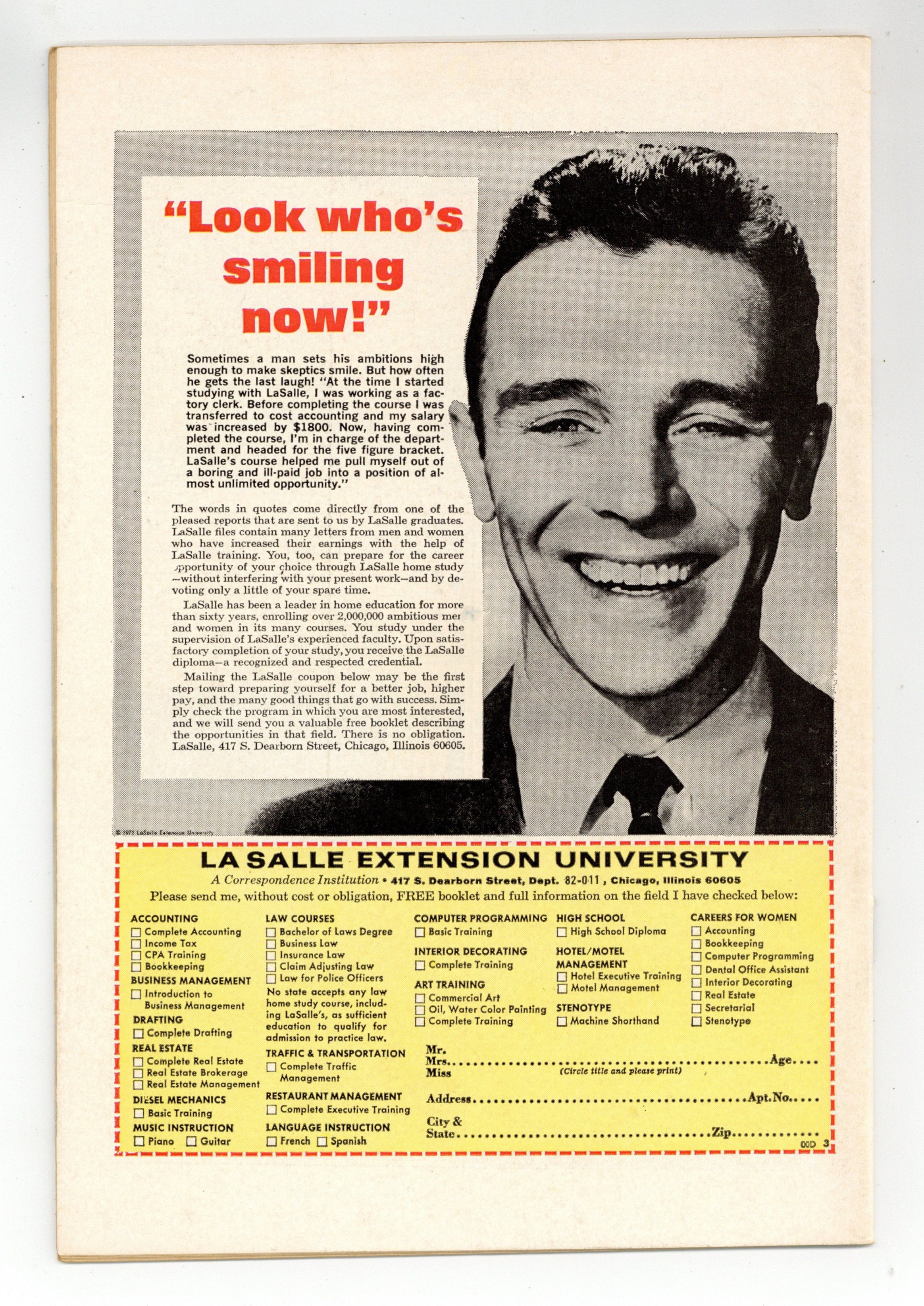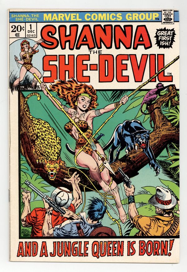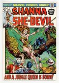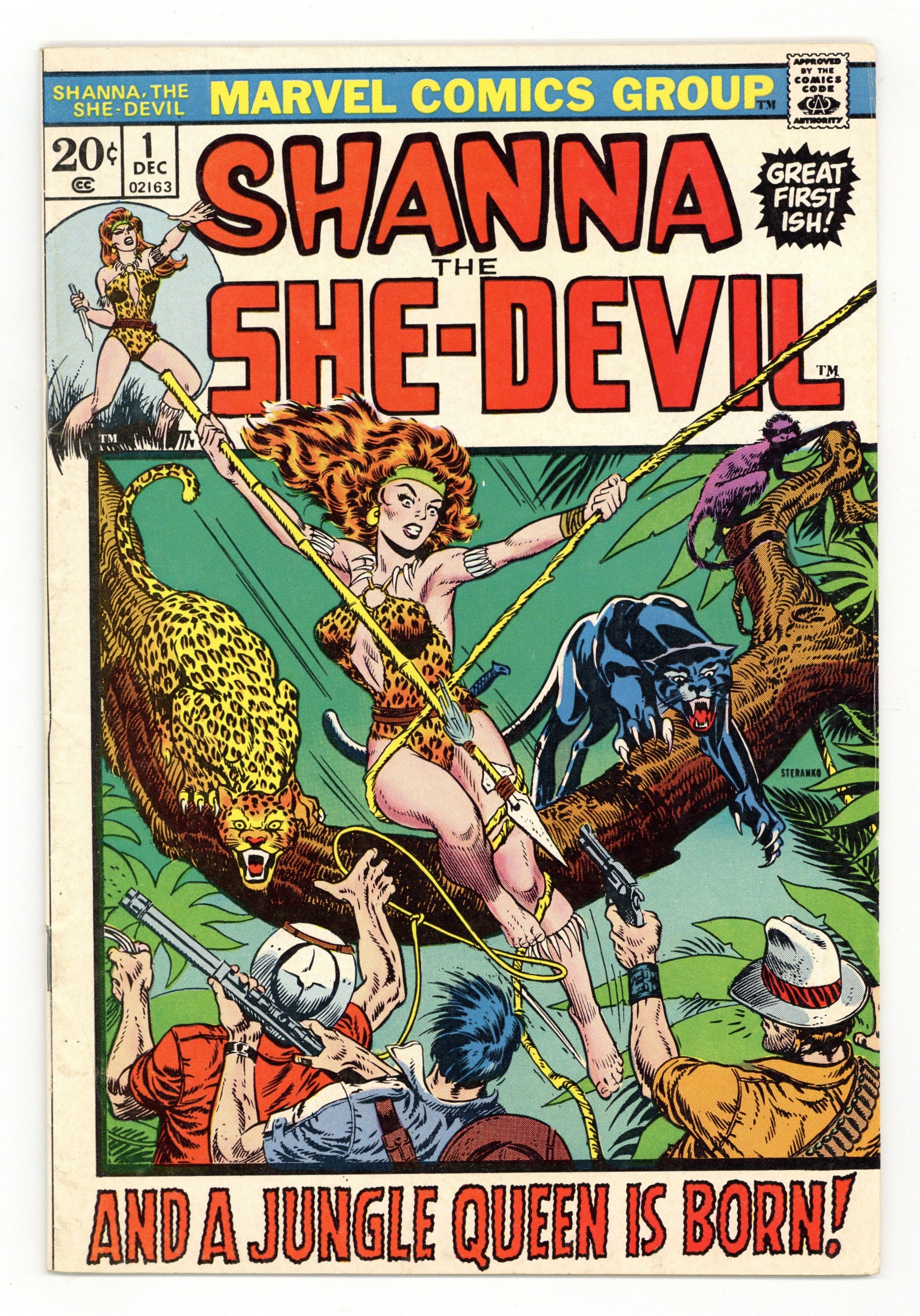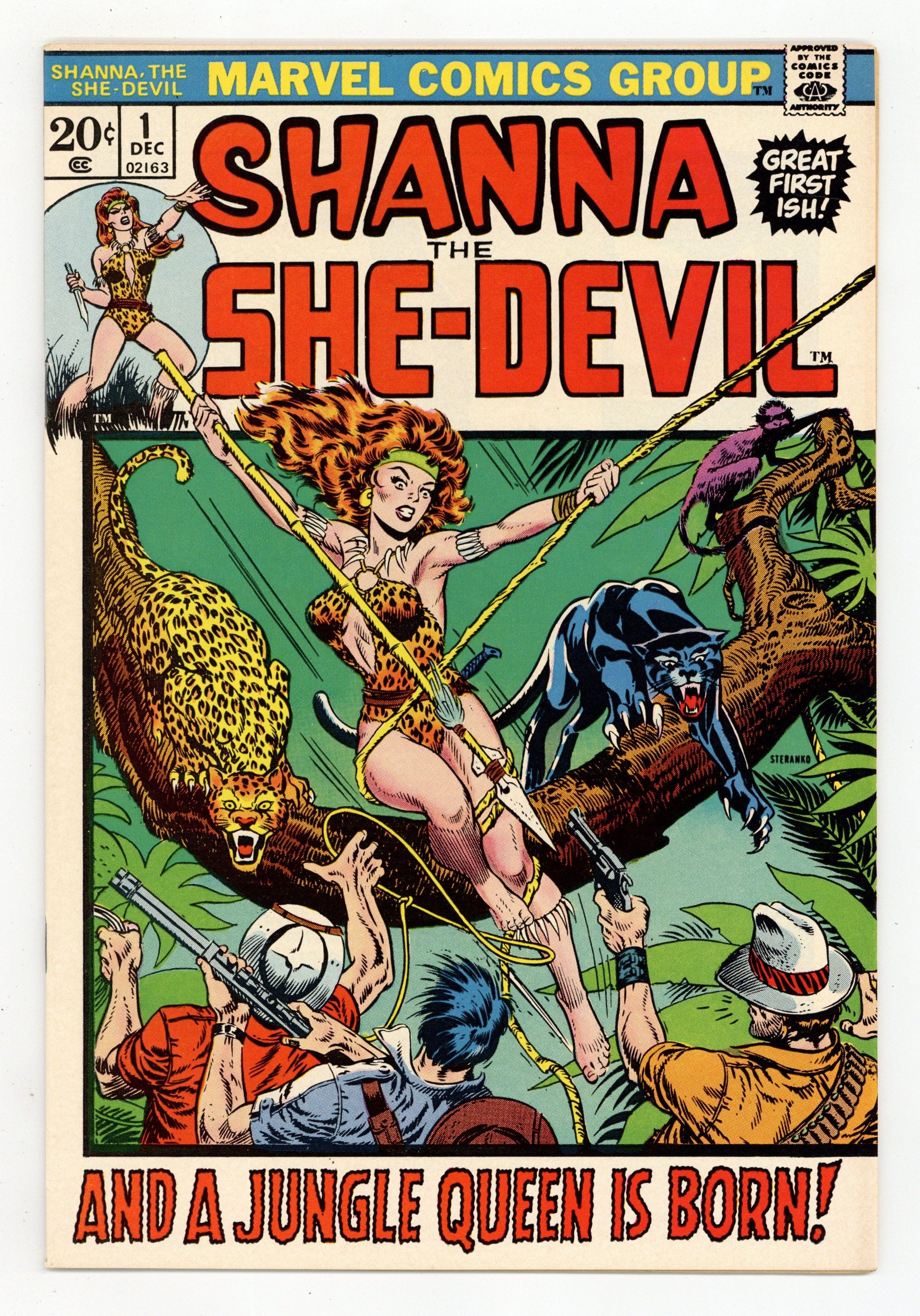 Cover art by Jim Steranko. "Shanna the She-Devil!", script by Carole Seuling and Steve Gerber, pencils by George Tuska, inks by Vince Colletta; The origin of Shanna; Shanna O'Hara Plunder is the daughter of a diamond miner; Born in Africa, she spent her childhood in the jungles of Zaire; After Shanna's father accidentally kills her mother, Shanna moves back to the United States to live with relatives, and Shanna grows up to become an accomplished athlete and then becomes a zoologist; She returns to Africa and patrols the jungle living freely with the land. 36 pgs., full color. Cover price $0.20.