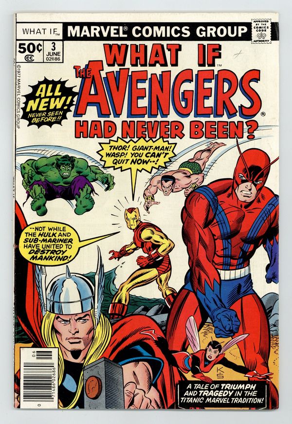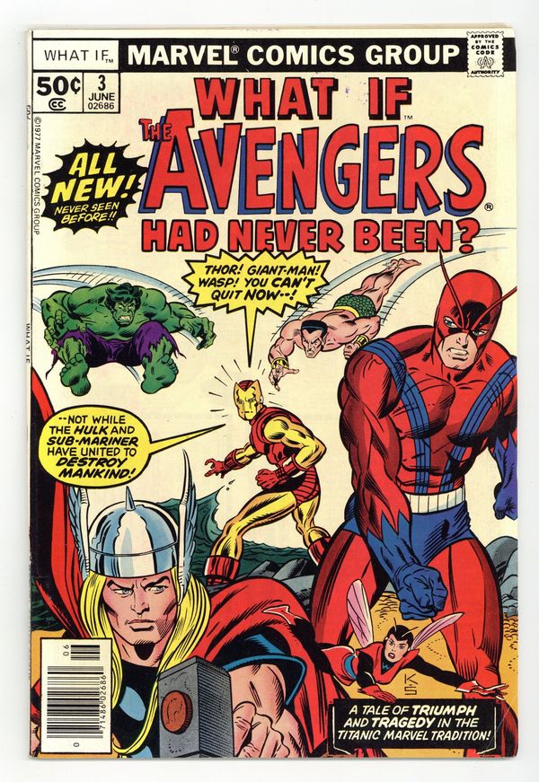 Cover pencils by Gil Kane, inks by Joe Sinnott. What if...the Avengers Had Never Been? starring the Hulk, Iron Man, the Sub-Mariner, Giant-Man, the Wasp, and Thor, script by Jim Shooter (plot, script) and Gil Kane (plot), pencils by Gil Kane, inks by Klaus Janson; The Avengers break up after the Hulk leaves. Hostess Cupcakes ad with Captain America, pencils by Sal Buscema, inks by Frank Giacoia. 52 pgs. Cover price $0.50.