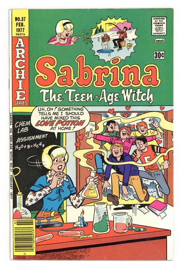 Sabrina tries to use magic to speed up her Christmas preparations; Aunt Hilda goes ice fishing; Hilda seeks extreme methods to cure her dizzy spells. Stories and art by George Gladir, Samm Schwartz, Bob Bolling, Jon D'Agostino, and Dick Malmgren, plus Lil Jinx by Joe Edwards. 32 pages. Cover by Stan Goldberg. Cover price $0.30. Cover price $0.30.