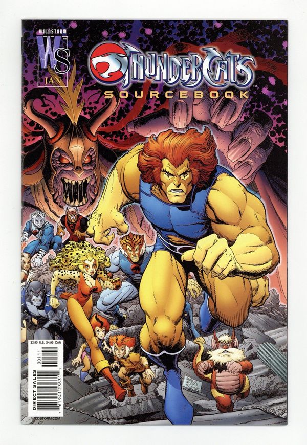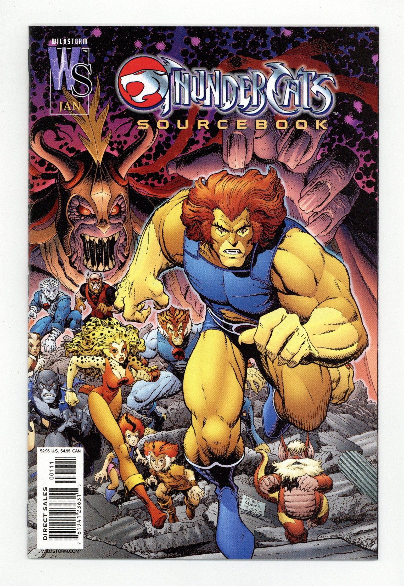 $17.50WRITTEN BY FORD LYTLE GILMORE; ART BY JIM LEE, ARTHUR ADAMS, ALÉ GARZA, KAARE ANDREWS, HUMBERTO RAMOS, DUSTIN NGUYEN, ED MCGUINNESS, AND VARIOUS; COVER BY ADAMS Everything you've ever wanted to know about the Thundercats, drawn by your favorite artists! This invaluable volume is chock full of facts, stats and eye-popping artwork ? supplying crucial data on the likes of Lion-O, Cheetara, Mumm-Ra, the Thunderkittens, Snarf, and so much more! Every major character is profiled in this extensively illustrated extravaganza! For more information, see the feature article. FC, 32 PG. $2.95 Cover price $2.95.