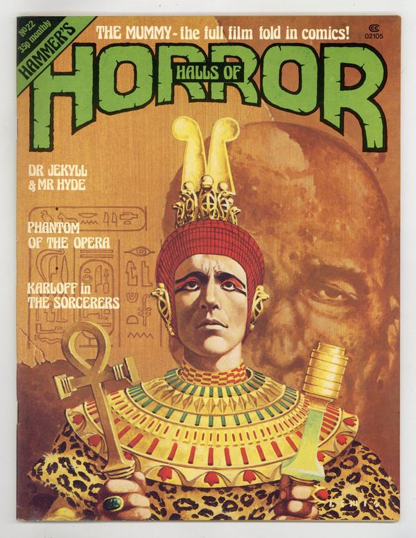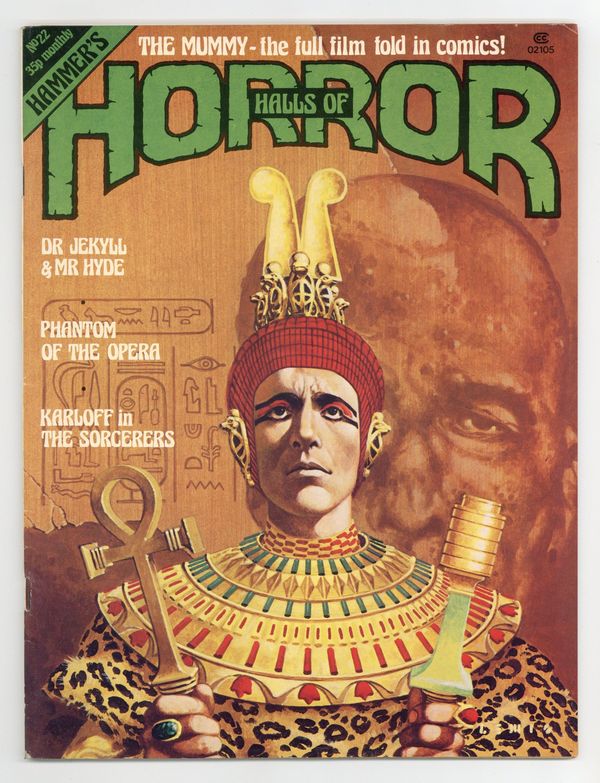 Painted cover by Brian Lewis. Stories by Steve Parkhouse, Steve Moore, John Brosnan, Cathy O'Brien, Tony Crawley, and Bob Sheridan. Art by David Jackson and Sergio Goudenzi. Edited by Dez Skinn of Warrior fame, House of Hammer presented comics adaptations and articles based on Hammer Films' legendary horror movies, featuring an array of British comics talent early in their careers. A comics adaptation of Hammer's first Mummy picture, 1959's The Mummy. Kharis rises from his tomb to stalk the archaeologists who violated the tomb of his beloved. In a Terror Tales short, an escaped convict is chained to an injured cellmate, but he's not going to let that slow him down. Plus a history and filmography of the Hammer film studio, continued from the previous issue. The Mummy; Media Macabre/Review; History of Hammer; Revenge of the Vampire; Warlords of the Deep; Terror of the Tomb; Van Helsing's Terror Tales: The Hand of Fate. 8-in. x 10.5-in., 52 pages, B&W.