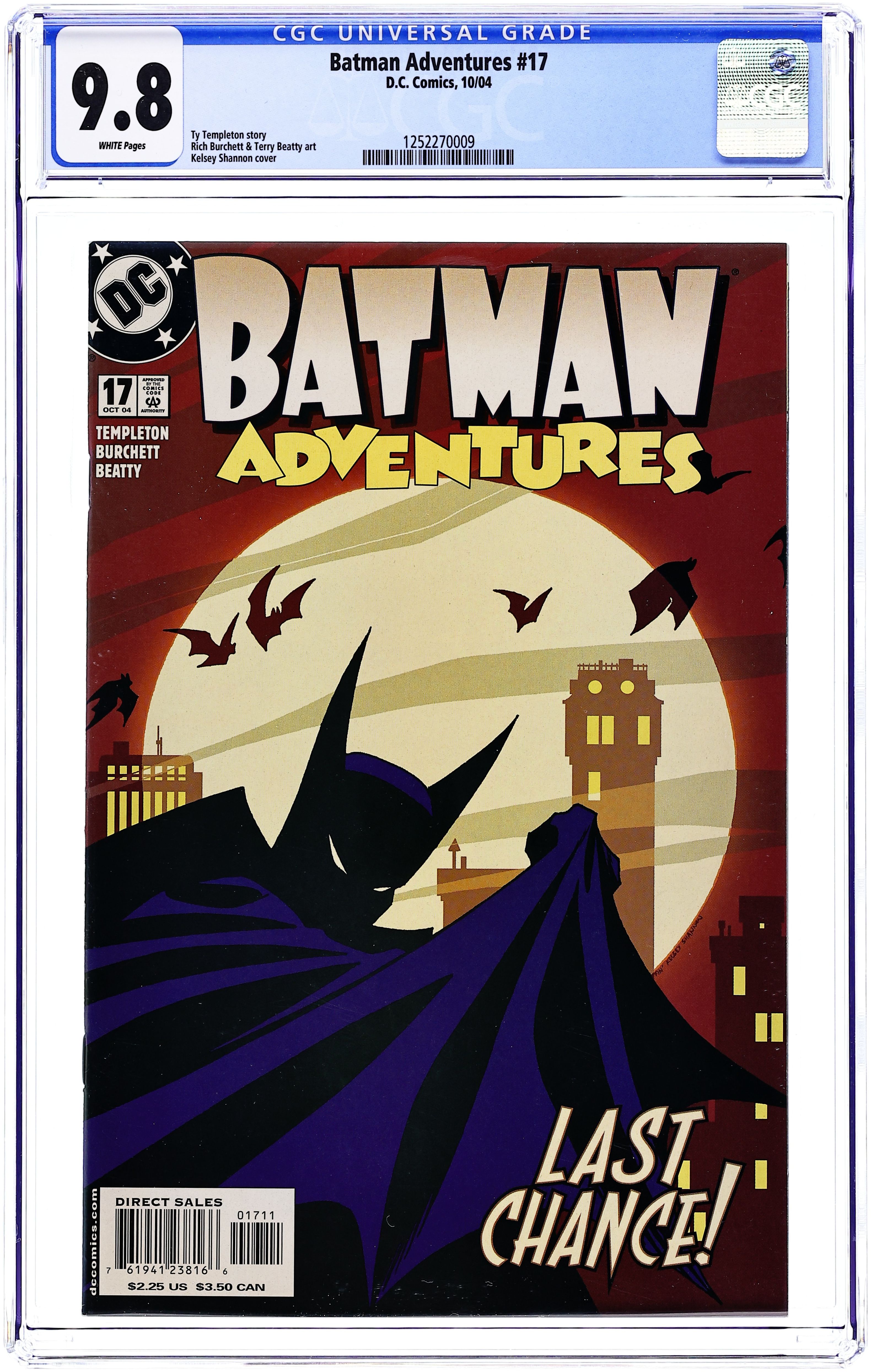 Written by Ty Templeton. Art by Rick Burchett and Terry Beatty. Cover by Kelsey Shannon. Last issue! A terrifying dream sets events in motion as Batman faces his ultimate foe... and we don't mean The Joker! Final issue. Cover price $2.25.