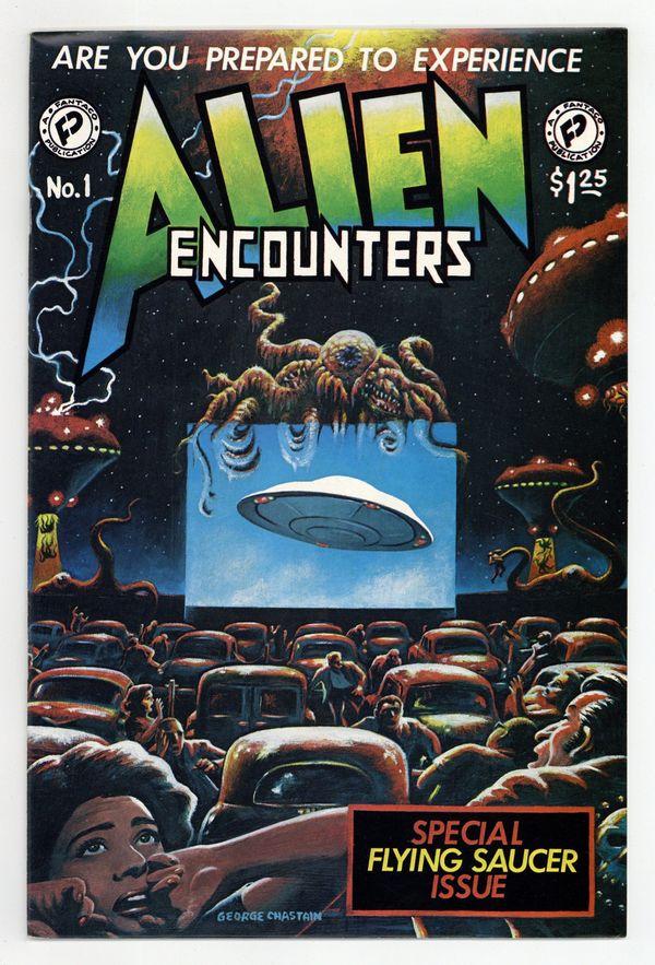 $9.00Special Flying Saucer Issue! "Earth Invasion" is written by Larry Shell, with art by Steve Bissette; "Chairman Mao and the Men from Mars" is written and illustrated by Steve Stiles; "There's No Business Like Space Business" is written and illustrated by Fred Hembeck; "Fast Food" is written by Tim Boxell, with art by Rich Larson and Tim Boxell; "Saucer Attack" is written and illustrated by George Erling; "Surviving Son" (parody of Kal El (Superman) being saved from Krypton) is written and illustrated by Mike Zeck; "Pick of the Litter" is written and illustrated by Steve Bissette; "Watcher from the Skies" is written by Bill Kelley, with art by Tom Yeates; "U.F.O. Indoors" is written and illustrated by Howard Cruse; "Outpost" is written by Larry Shell, with art by Tom Yeates. Plus: pin-ups by Rudy Nebres and Tom Sutton. Cover by George Chastain. B&W, 7 1/4" x 11" Cover price $1.25.