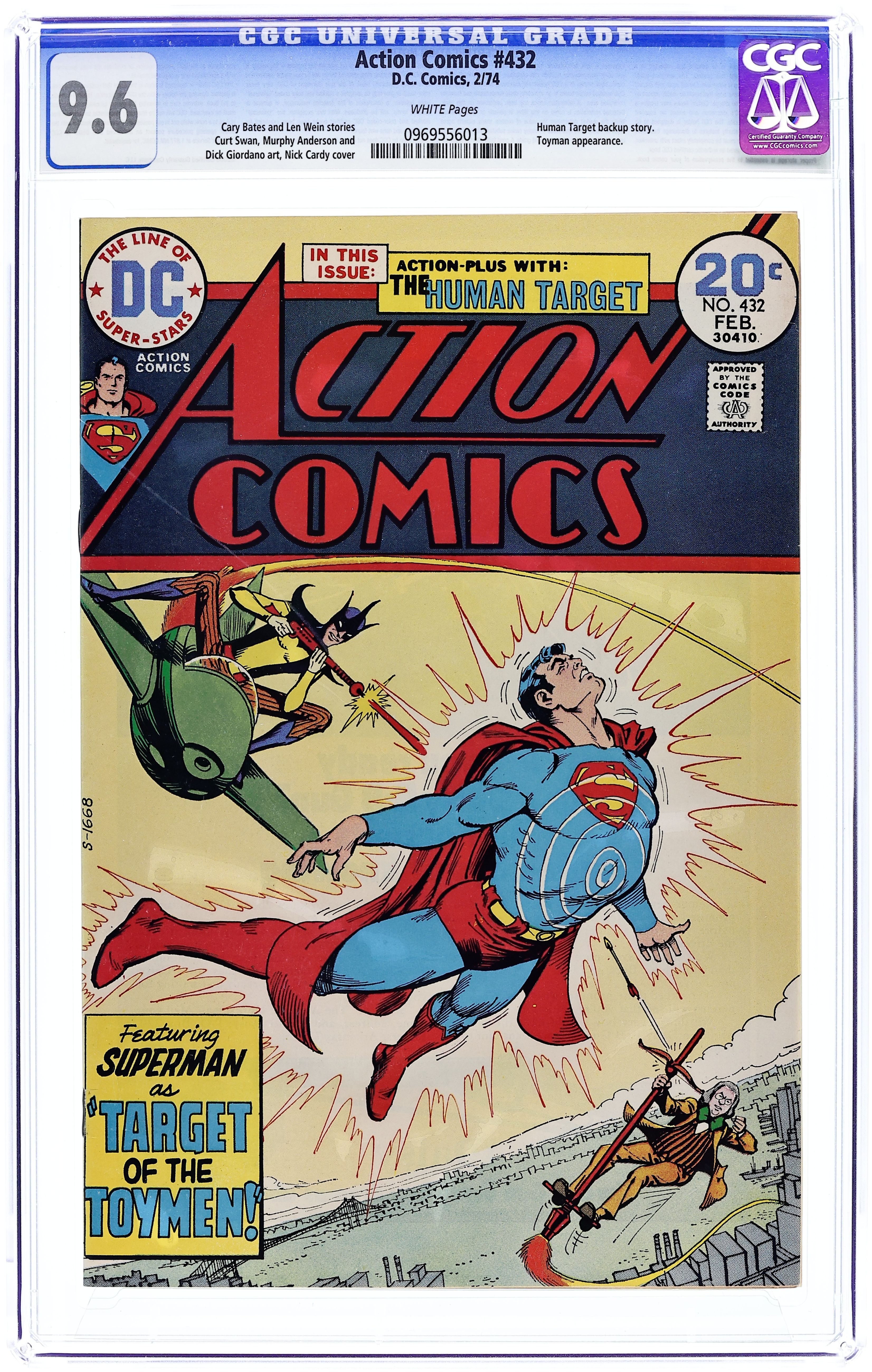 Cover by Nick Cardy. "Target of the Toymen!", script by Cary Bates, pencils by Curt Swan, inks by Murphy Anderson; Clark Kent is shooting a commercial at the airport when a criminal similar to the Toyman shrinks and steals a 707; The new Toyman is able to escape by using exploding bubble gum animals to threaten the town below, forcing Superman to abandon the chase to protect the residents; Within a few days, a nuclear submarine and a solar-powered train are stolen as this new Toyman intends to ransom off the stolen vehicles. "The Million-Dollar Methuselah Contract" starring the Human Target, script by Len Wein, art by Dick Giordano; Christopher Chance is hired by millionarie oilman Henderson Repp, who suspects his nephew is trying to kill him. 36 Pages, Full Color. Cover price $0.20.
