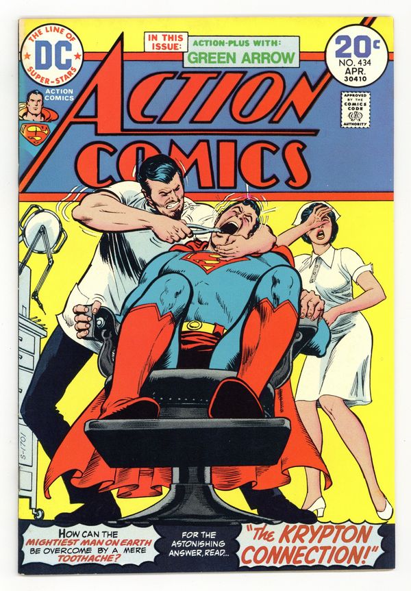 Tags: Superman$25.00Cover by Nick Cardy. "The Krypton Connection!", script by Cary Bates, pencils by Curt Swan, inks by Vince Colletta; The Kryptonians Dr. Xadu and Zeda trick Clark Kent into a dentist chair where they reveal that they have returned to Earth and have placed Superman under their control. "Zatanna's Double Identity!", script by Elliot S! Maggin, pencils by Dick Dillin, inks by Frank McLaughlin; Zatanna accidentally gives herself the powers and personality of Black Canary, causing Green Arrow problems when the real Black Canary becomes jealous. 36 Pages, Full Color. Cover price $0.20.