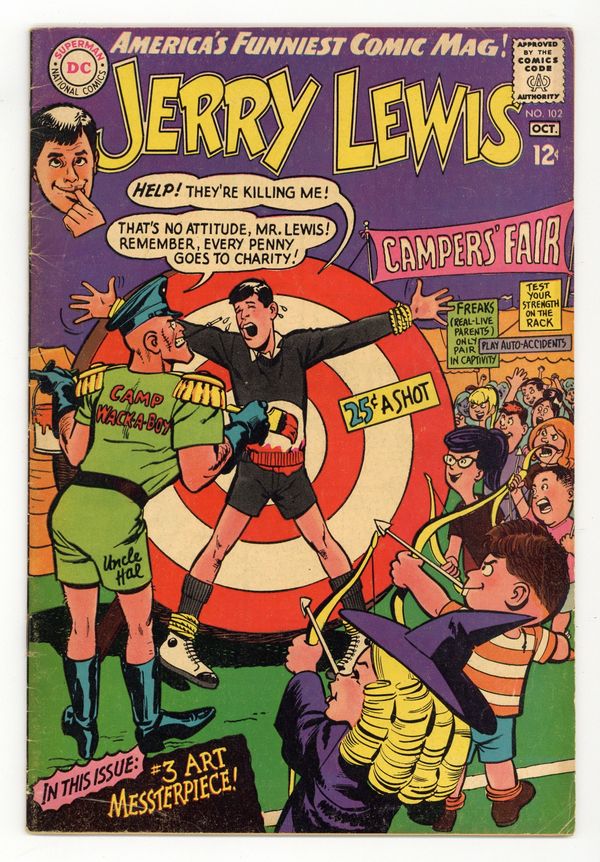 The Hound Dog from Mars - Written by Arnold Drake. Art and Cover by Neal Adams. Also starring Renfrew, Witch Kraft, Zanyia and Uncle Hal. Cameo by The Beatles. Plus: A Letter from Jerry. Also: Cap's Hobby Hints untitled activity half-pager by Henry Boltinoff. And: The Jerry Lewis Gallery of Art Messterpieces #3: Whistler's Mother illo by Neal Adams. 32 pages, full color. Cover price $0.12.
