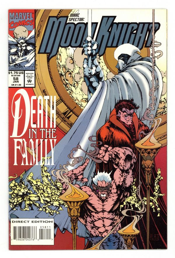 Tags: Marvel Legacy Numbering: Moon Knight (part 102), Moon Knight$18.75Death In The Family - Written by Terry Kavanagh. Art by Fred Haynes & Scott Koblish. Cover by Stephen Platt. While Marlene secretly move in on SpectorCorp, Moon Knight faces Bloodline, his best friend Jean-Paul DuChamp, in a duel to the death! Will the new, altered Moon Knight really kill his best friend? 32 pages, full color. Cover price $1.75.