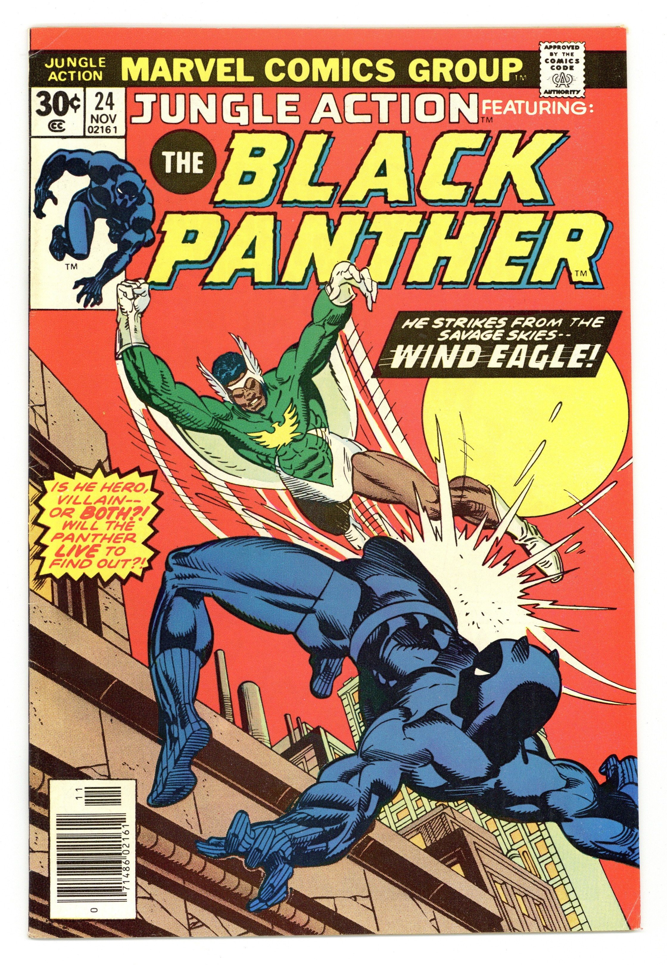 Final issue of the series. Cover pencils by Gil Kane, inks by Dan Adkins. Wind Eagle in Flight, script by Don McGregor, pencils by Rich Buckler (layouts, pages 1-13) and Keith Pollard (finishes pages 1-13, pencils pages 14-17), inks by Keith Pollard; Leroy Ames gives his version of the events leading to Angela's death; Wind Eagle attacks the Panther and ties him to a mill wheel. Letters from comics creators Robert Rodi, Ann Nichols and Helmsman Collins. 36 pgs., full color. Cover price $0.30.
