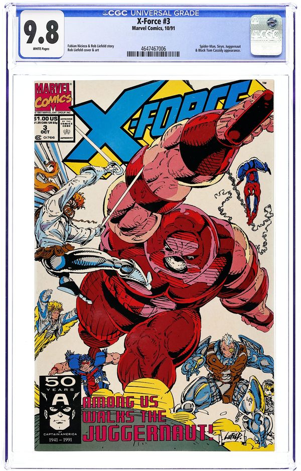 Cover art by Rob Liefeld. Battlecry, script by Rob Liefeld (Plot) and Fabian Nicieza, art by Rob Liefeld; Juggernaut and Black Tom are holding the World Trade Center hostage and Spidey teams up with X-Force to try and take them down; The last panel shows one of the Twin Towers being blown up. 36 pgs. $1.00. Cover price $1.00.