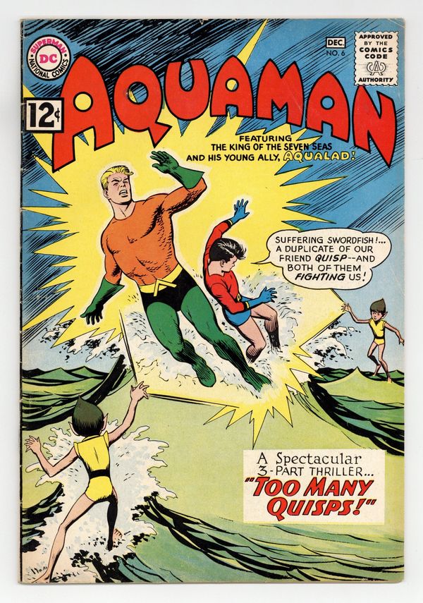Cover art by Nick Cardy. Too Many Quisps, art by Nick Cardy; Quisp and his brother Quirp team up with Aquaman and Aqualad against Quink who has teamed up with Captain Slade and is robbing shipping. Homer humor page by Henry Boltinoff. The First Frogmen! fact two-pager. Mystery Denizens of the Deep article. 36 pgs. $0.12. Cover price $0.12.