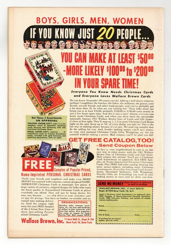 $45.50Cover pencils by Curt Swan and Kurt Schaffenberger (Lois Lane figure touch-up), inks by George Klein. "Half a Superman!", pencils by Curt Swan, inks by George Klein; Red Kryptonite particles in a comet cause Superman's left side, and Krypto's right side, to become vulnerable; unfortunately, it's on a day when Lois wants to prove that Superman is really Clark. Batman and Robin ad. Lois Lane ad. Supermen of America ad. 1st Supergirl emergency squad in "Supergirl's Super Boy-Friends!", script by Jerry Siegel, art by Jim Mooney; A gift from Phantom Girl is unfortunately made from Red Kryptonite, which makes Supergirl bestow super-powers on her mother, Dick, and Jerro when she kisses them. Superman ad. 36 Pages, Full Color. $0.12 Cover price $0.12.