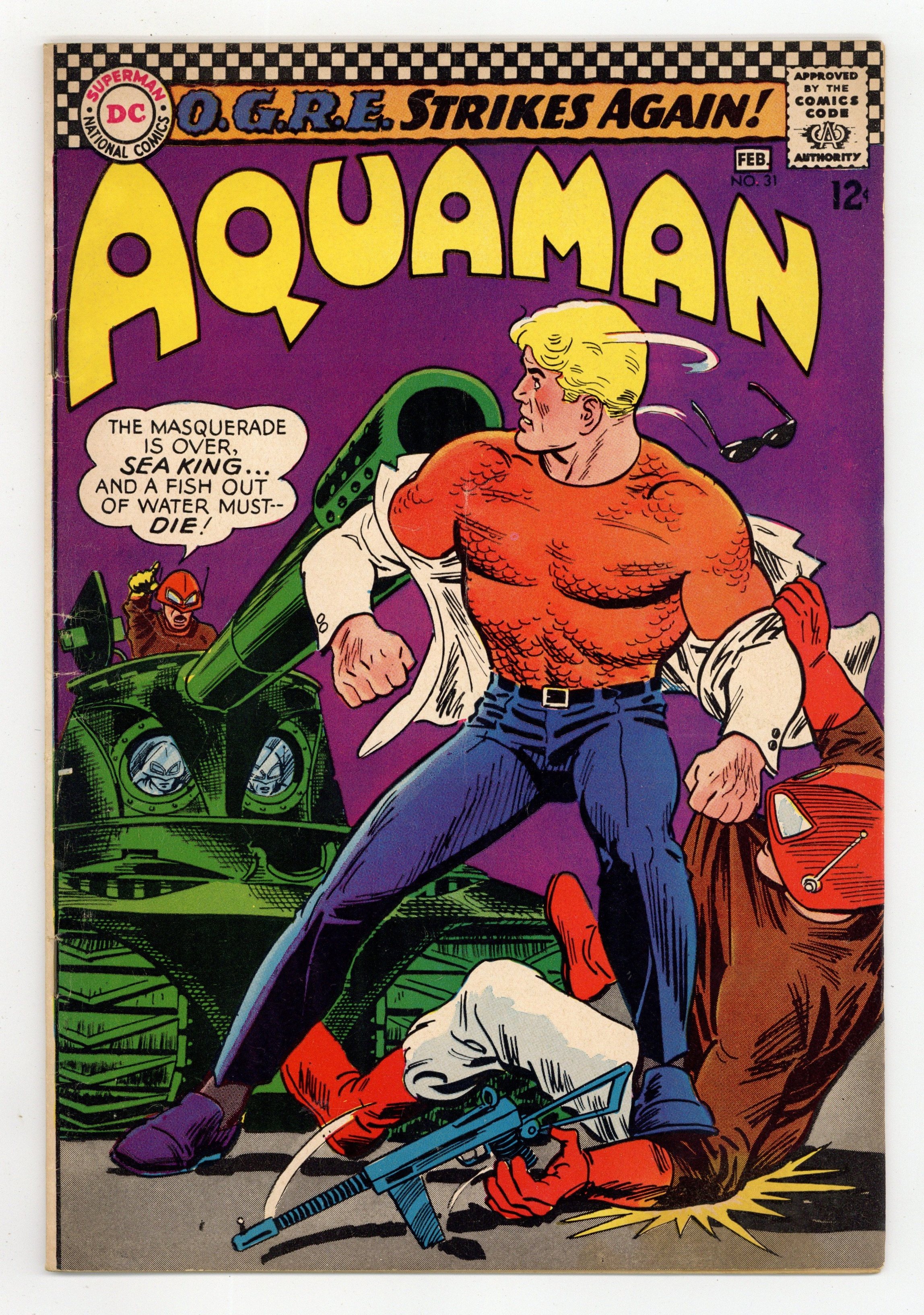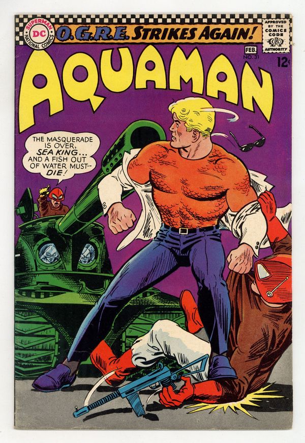 Cover art by Nick Cardy. O.G.R.E. Strikes Back! starring Aquaman, Aqualad, Mera, O.G.R.E., and The Tall Man, script by Bob Haney, art by Nick Cardy; to protect the U.N. from an O.G.R.E. weapon, Aquaman creates a water barrier. Cap's Hobby Hints activity half-page by Henry Boltinoff. 36 pgs. $0.12. Cover price $0.12.